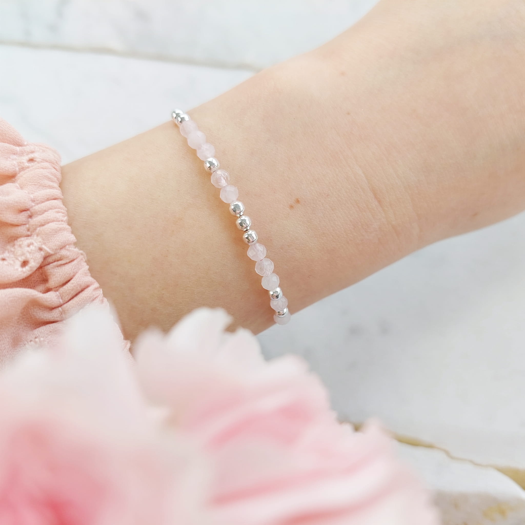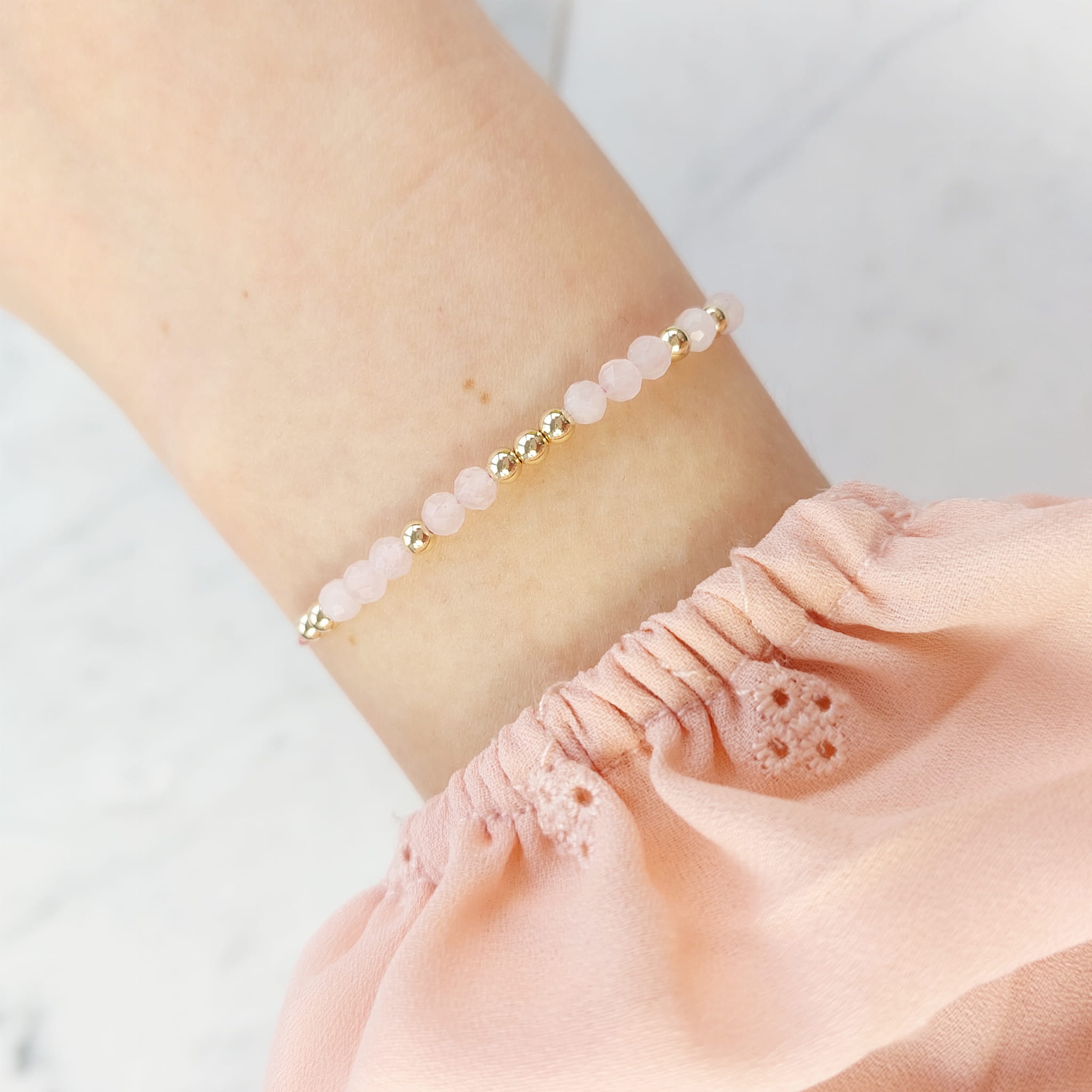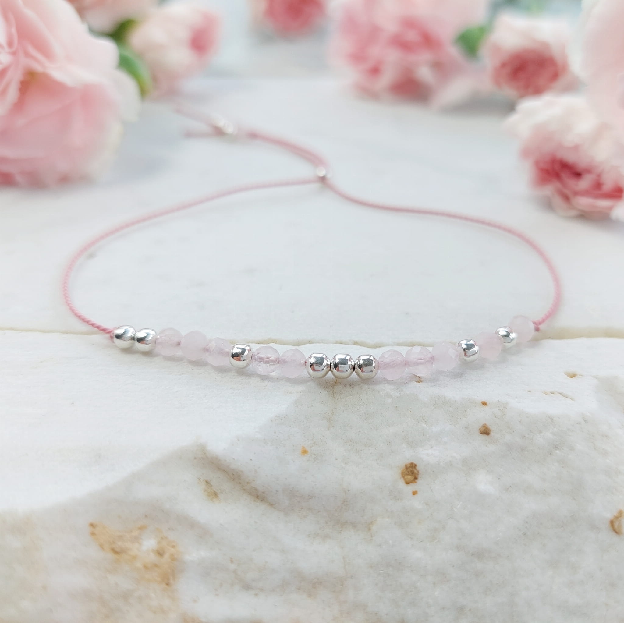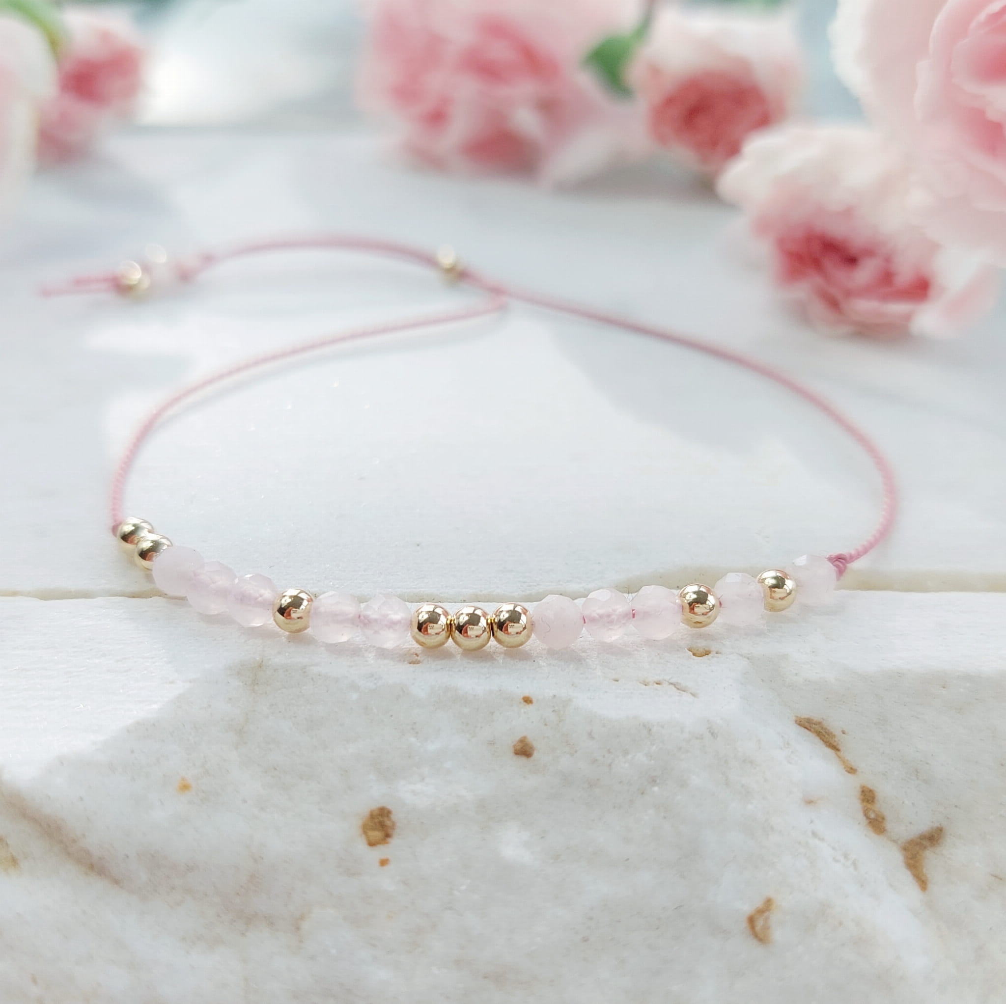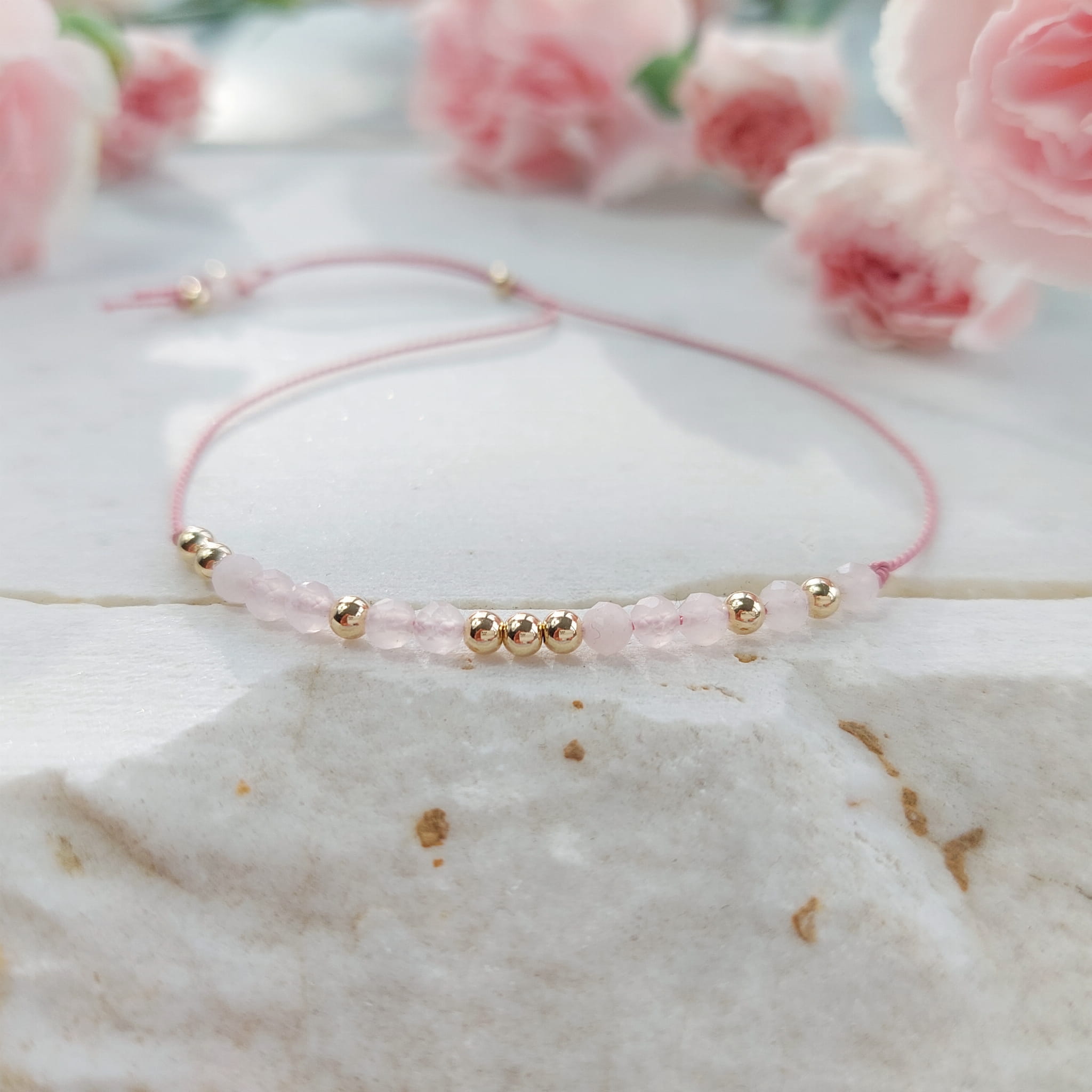 Bransoletka MIŁOŚĆ. Złoto, Srebro, Kwarc Różowy, Granat. Walentynki