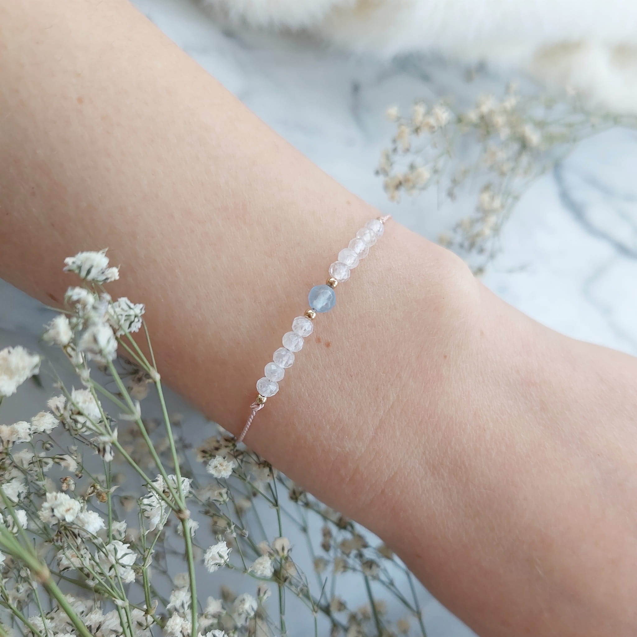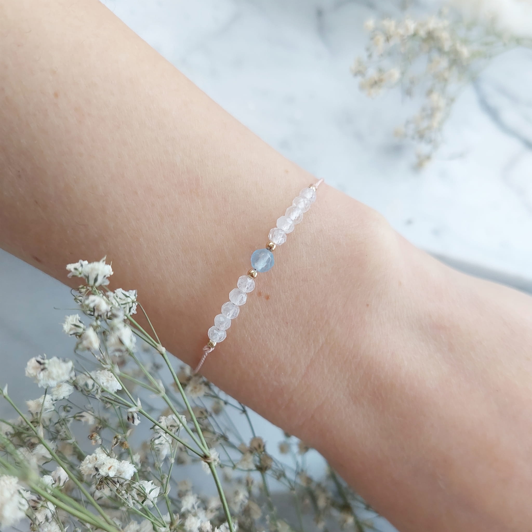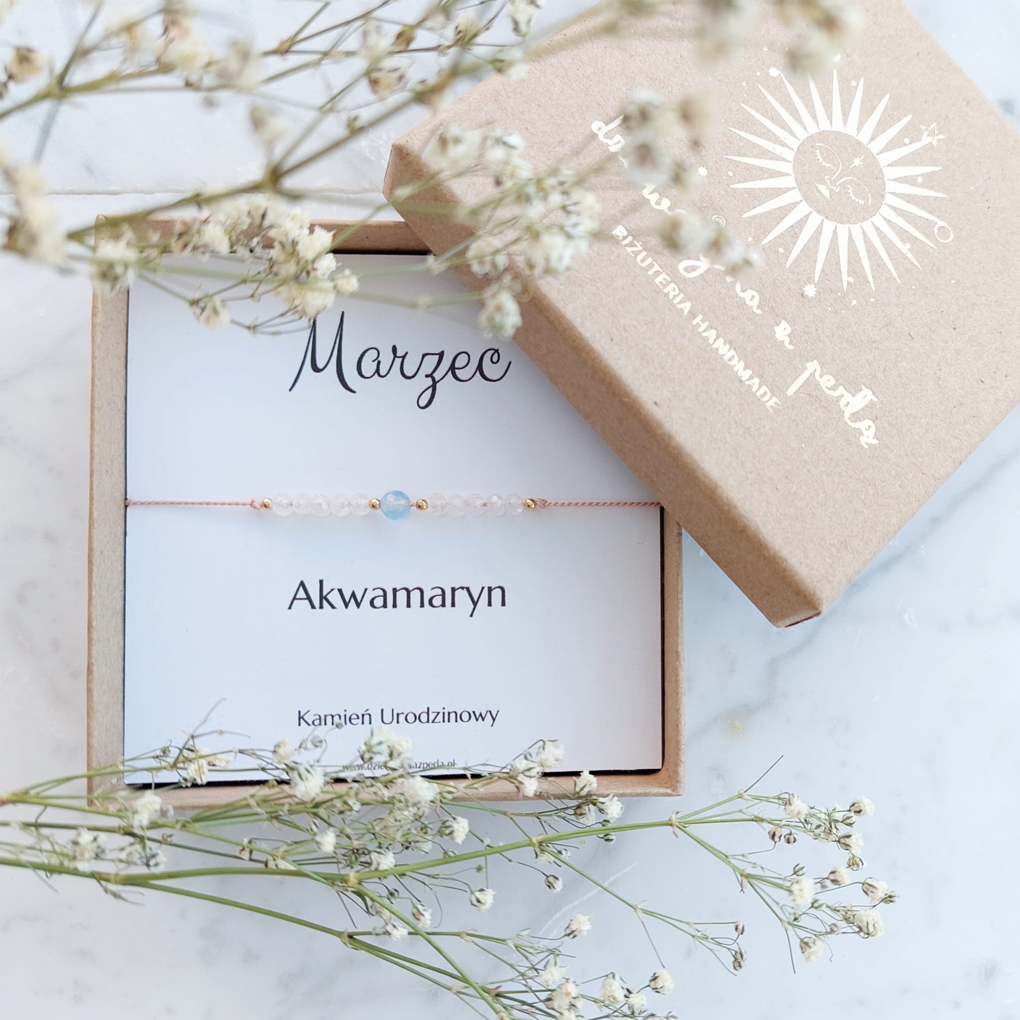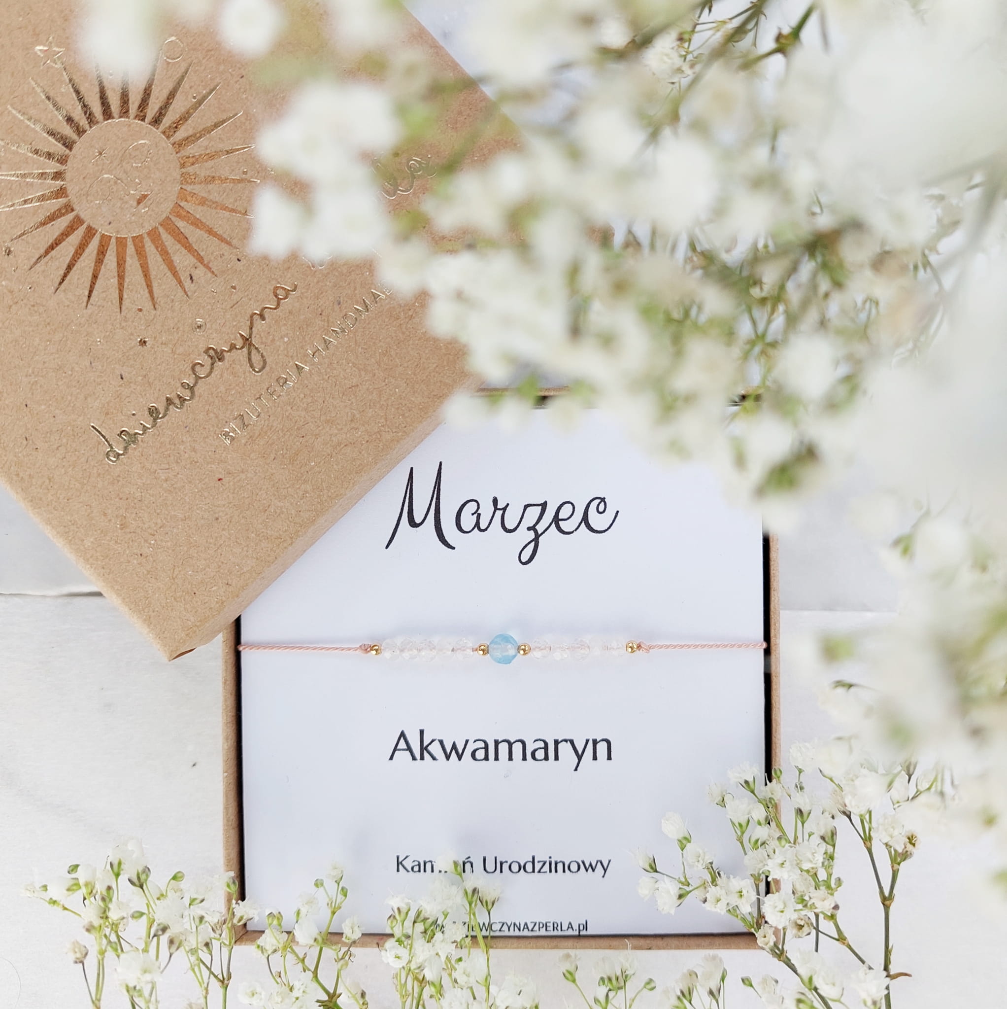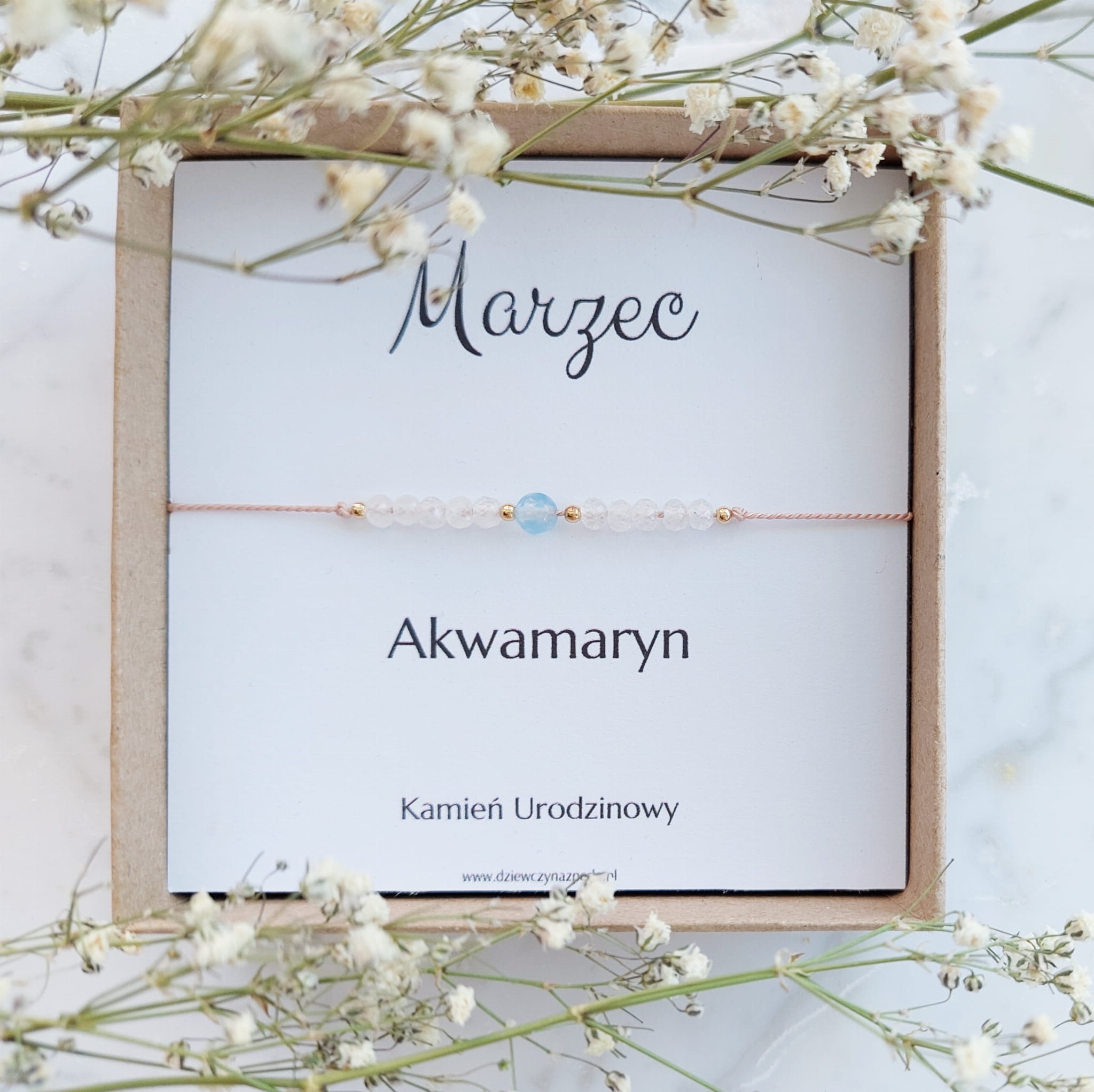 Bransoletka Urodzinowa MARZEC (AKWAMARYN) Idealny Prezent Urodzinowy