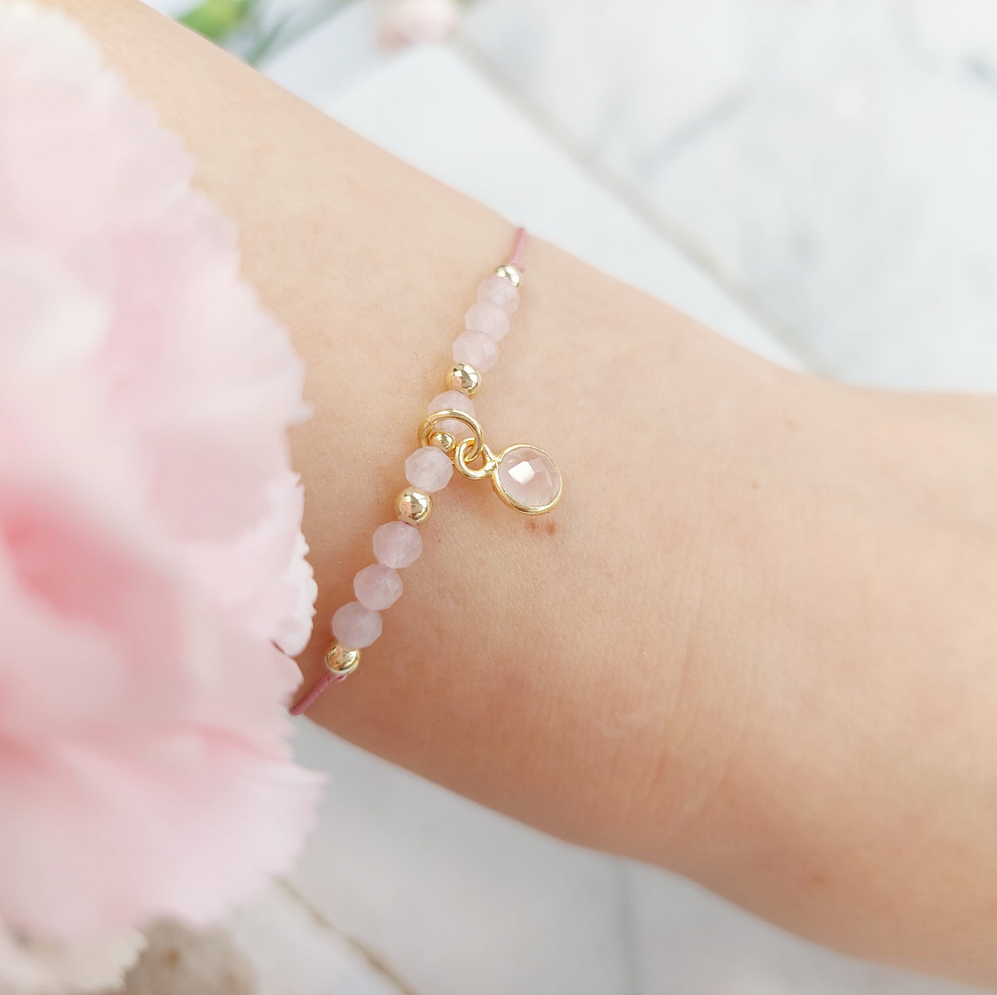 Materiał: naturalne kamienie: Kwarc Różowy, 14 karatowe złoto (goldfilled) lub srebro 925