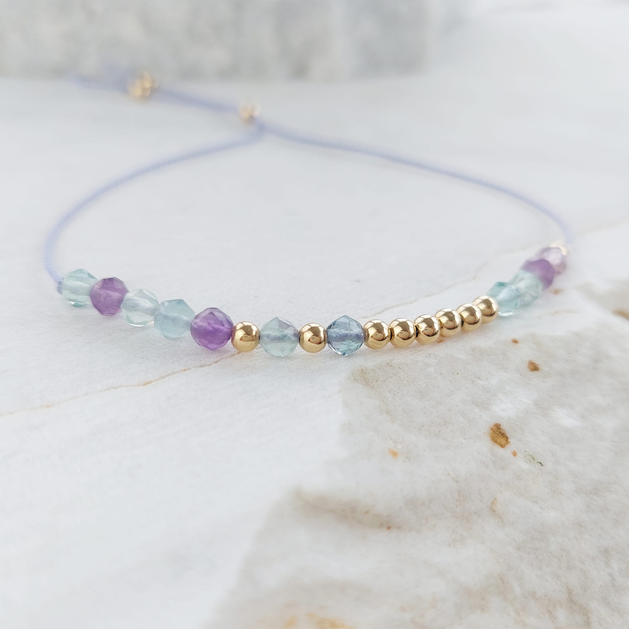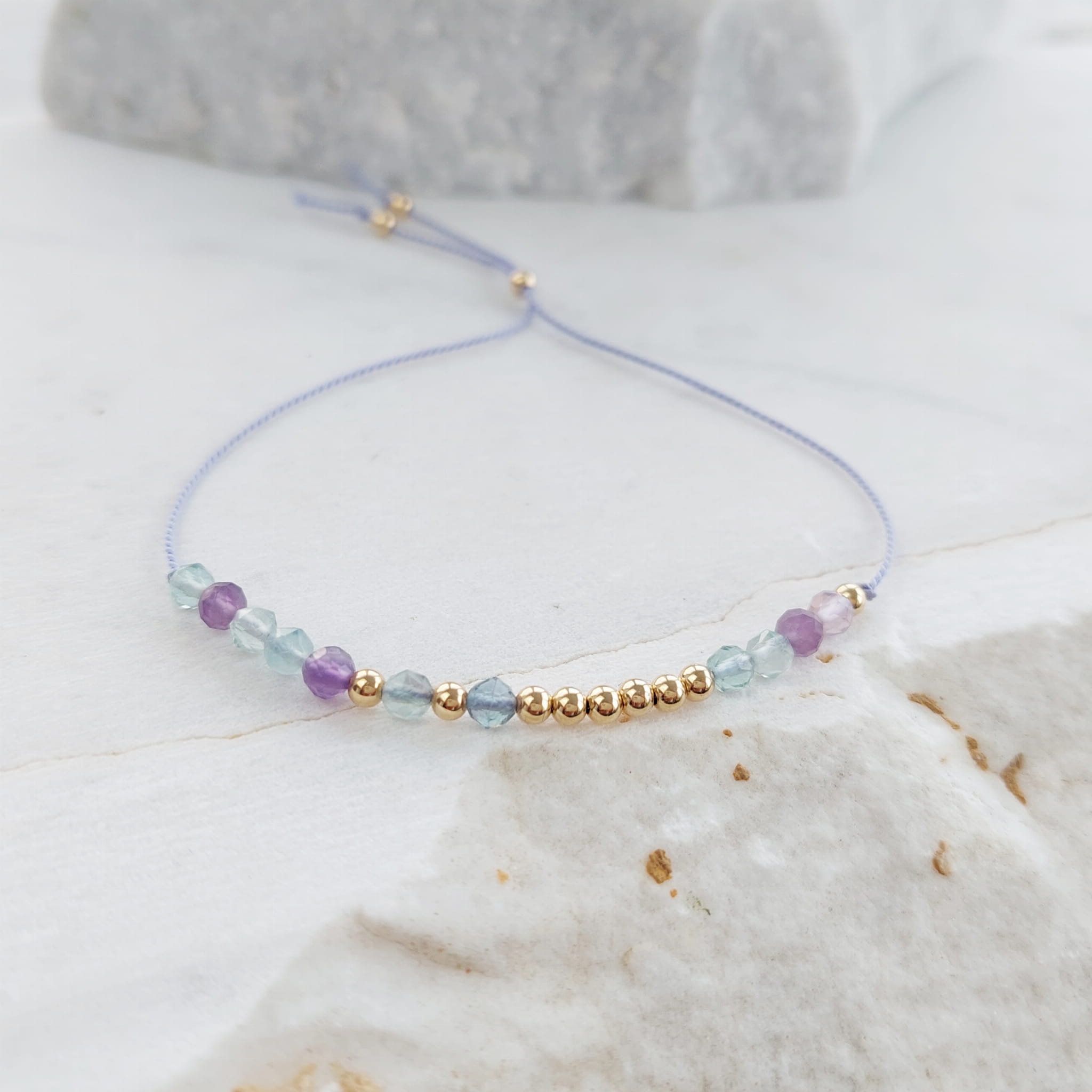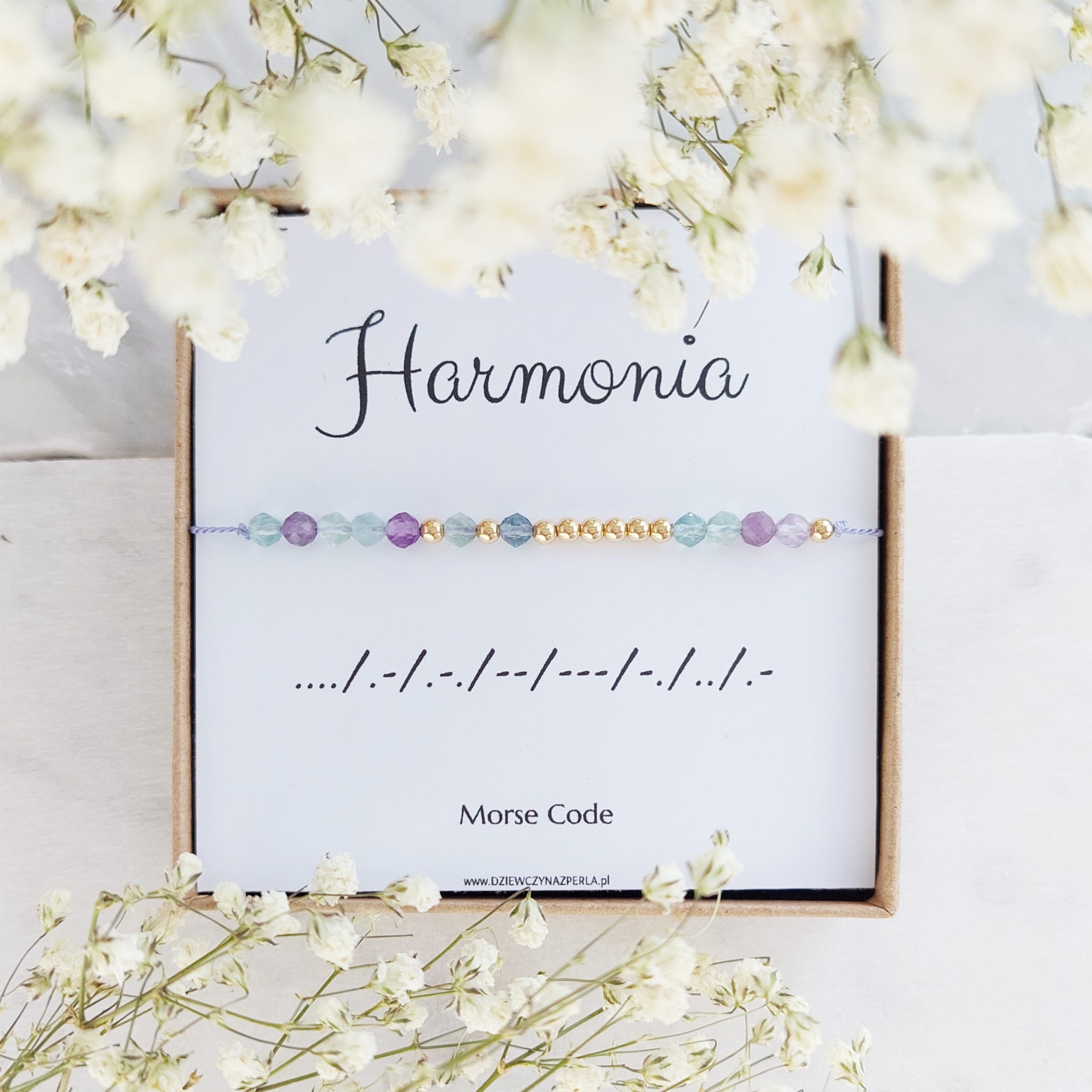 HARMONIA Bransoletka Motywacyjna MORSE CODE (Ametyst, Fluoryt) Złoto, Srebro. TALIZMAN