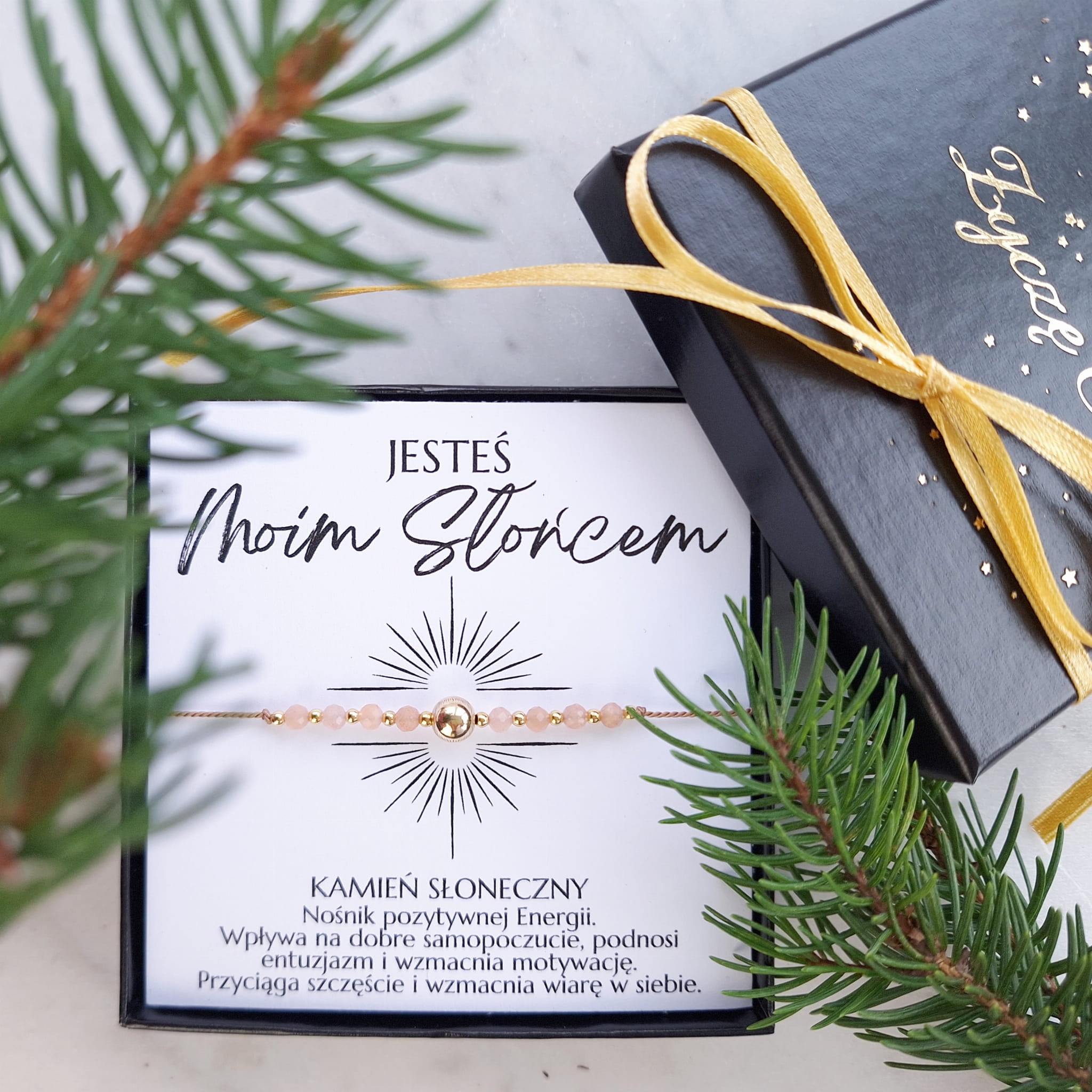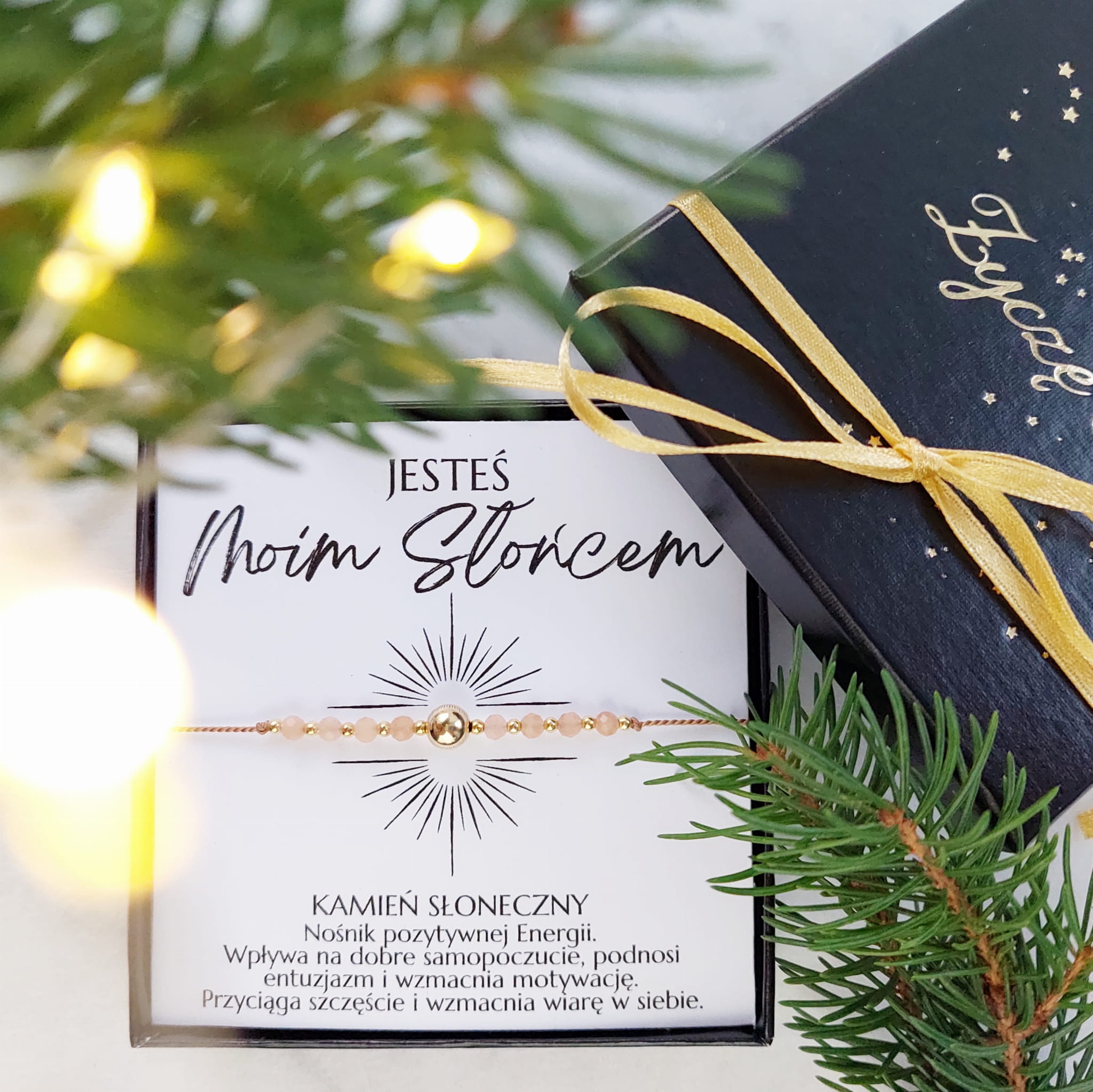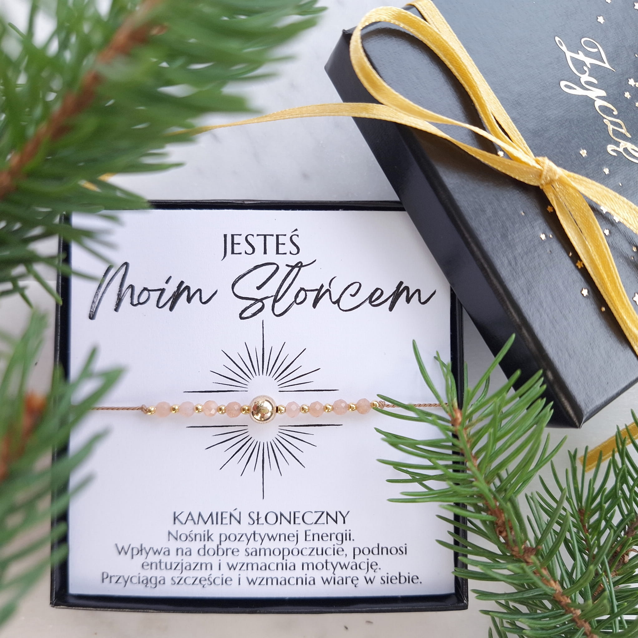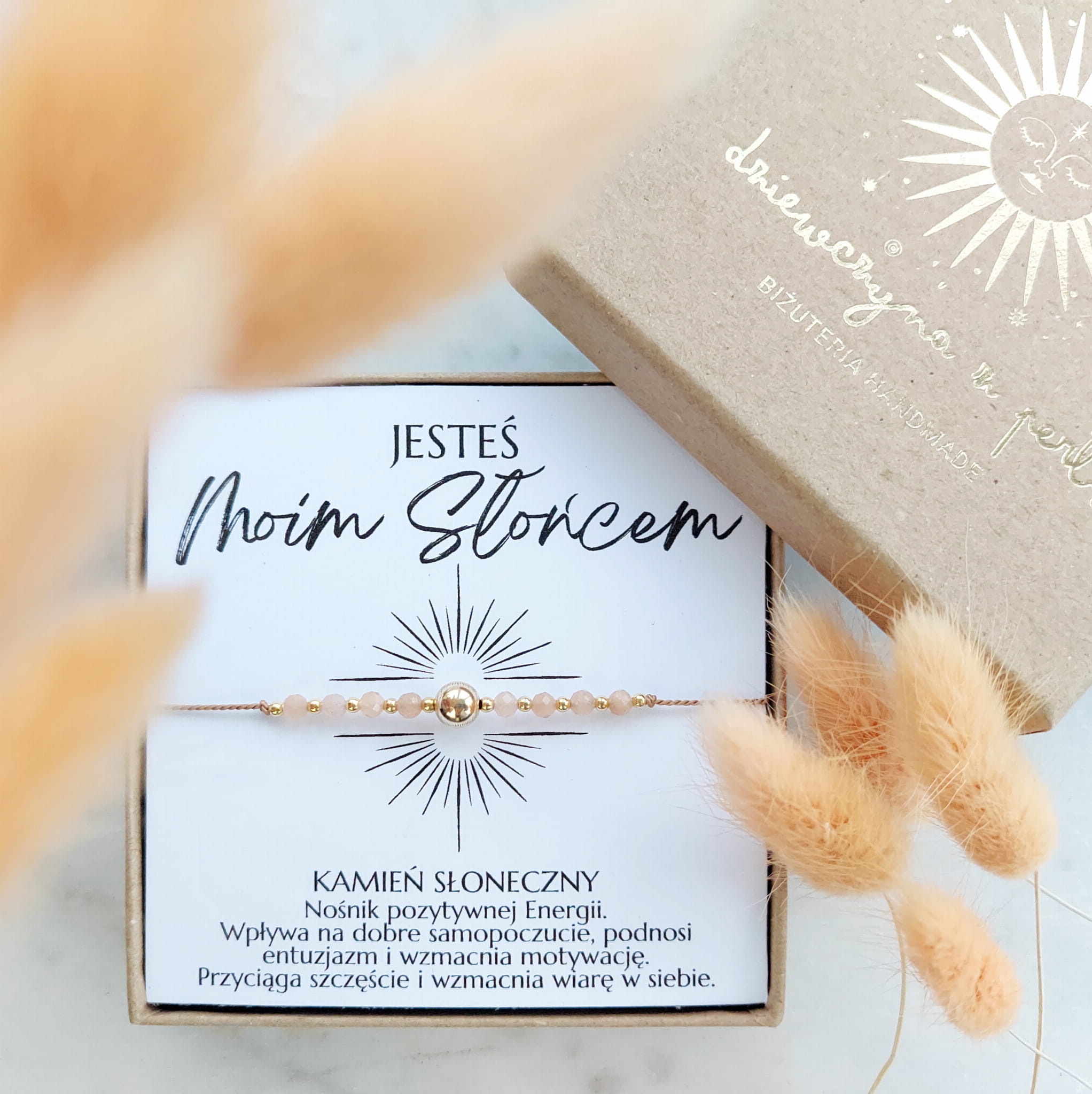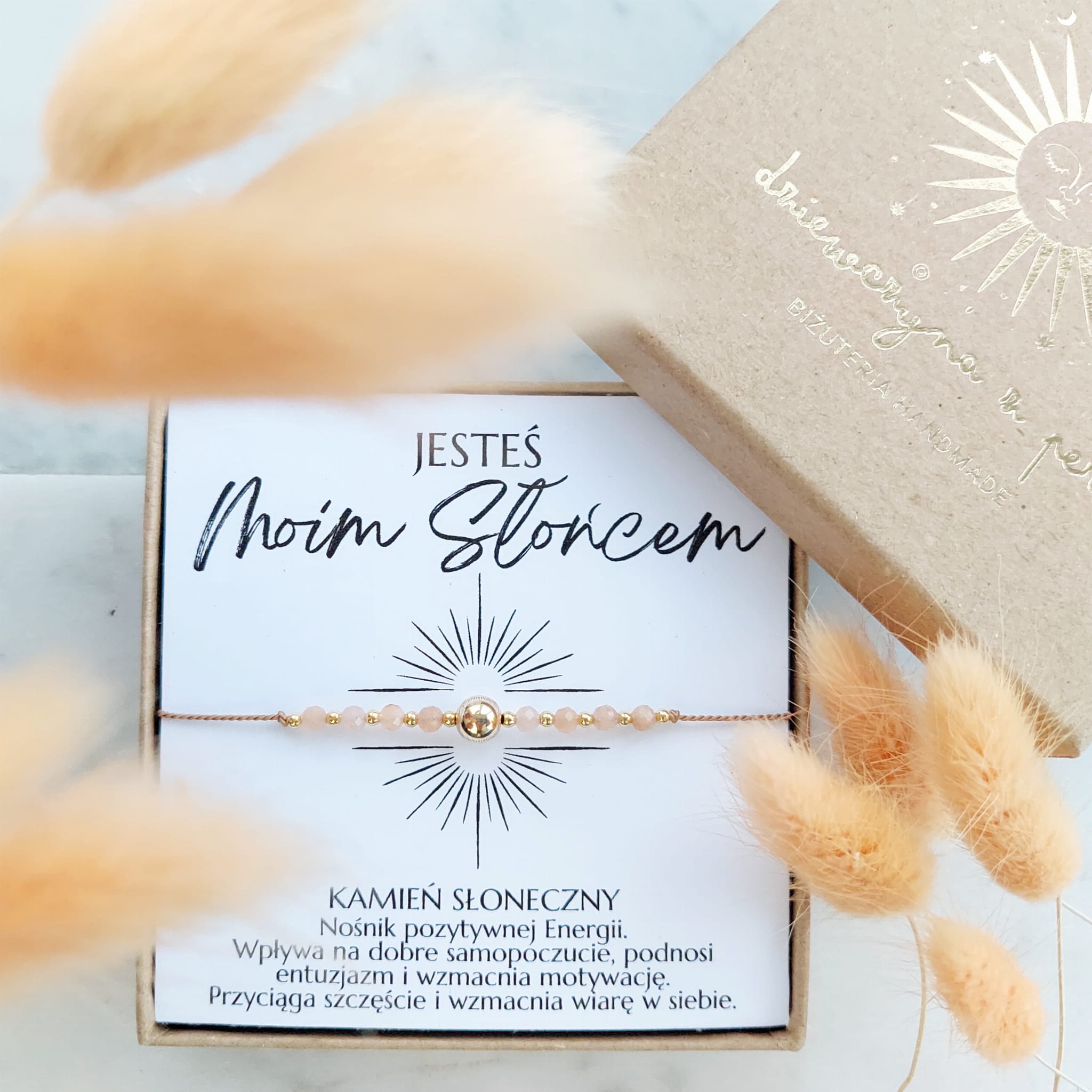 JESTEŚ MOIM SŁOŃCEM Bransoletka Szczęścia, Złoto, Kamień Słoneczny. TALIZMAN