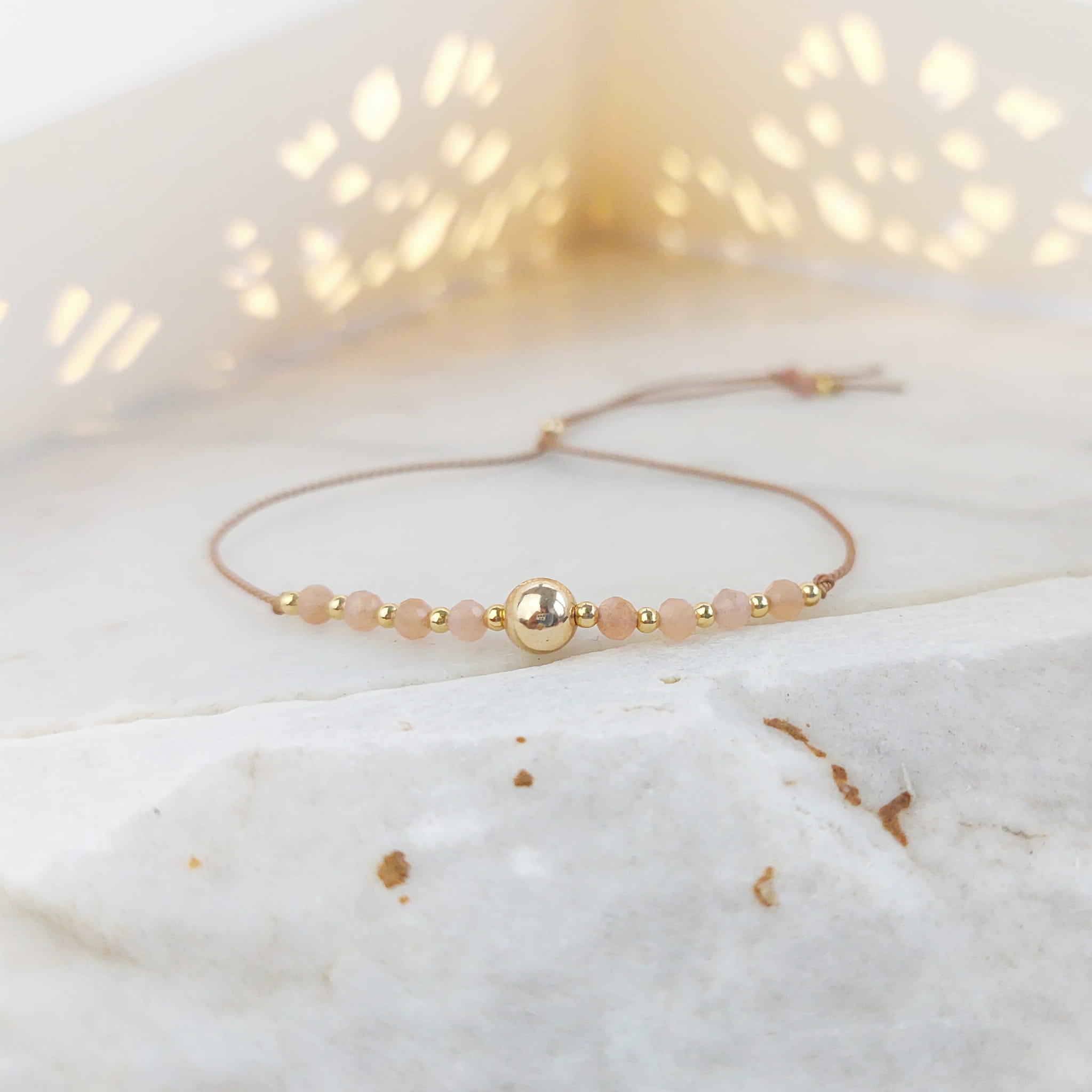 Bransoletka ze złotą kulą symbolizującą Słońce w otoczeniu Kamieni Słonecznych.