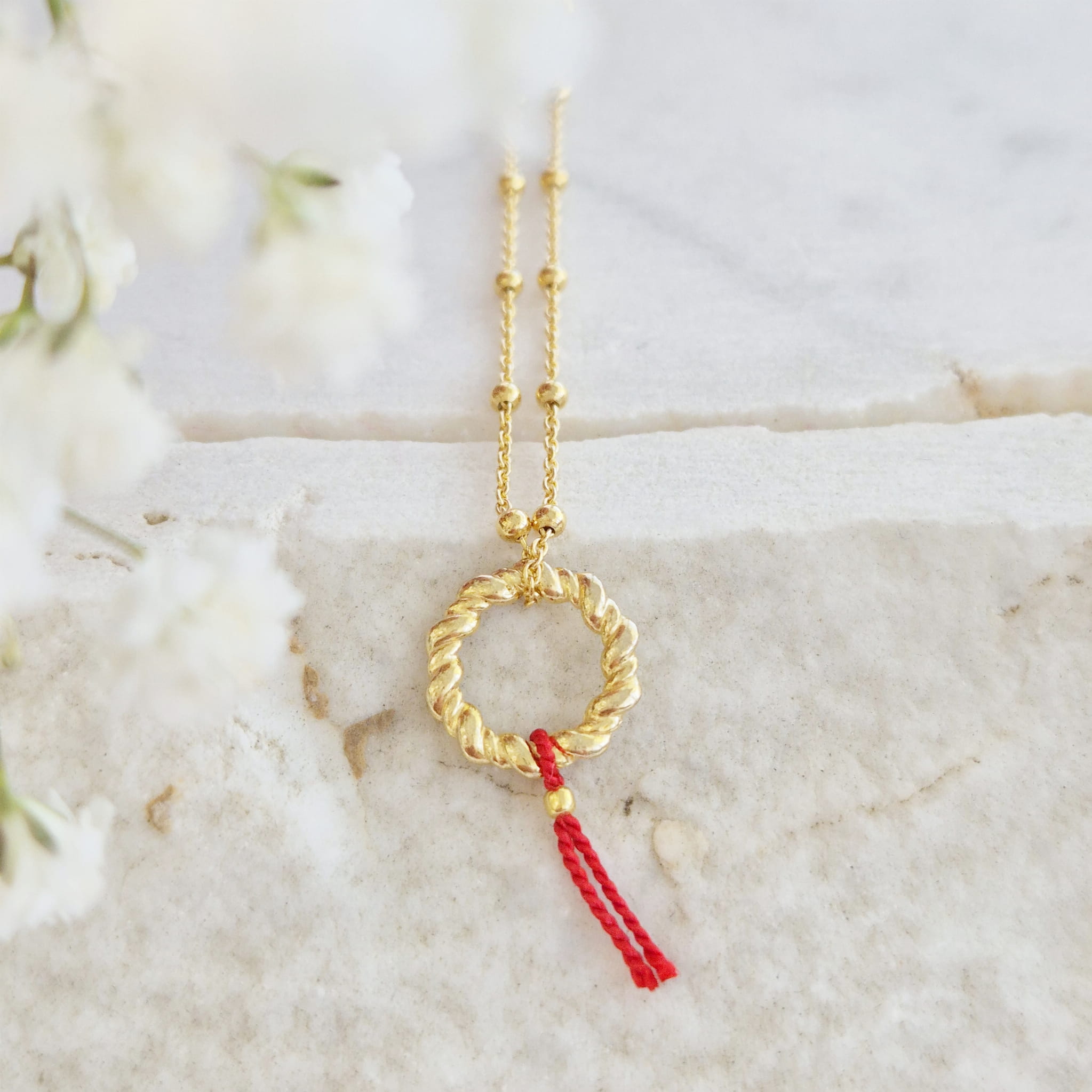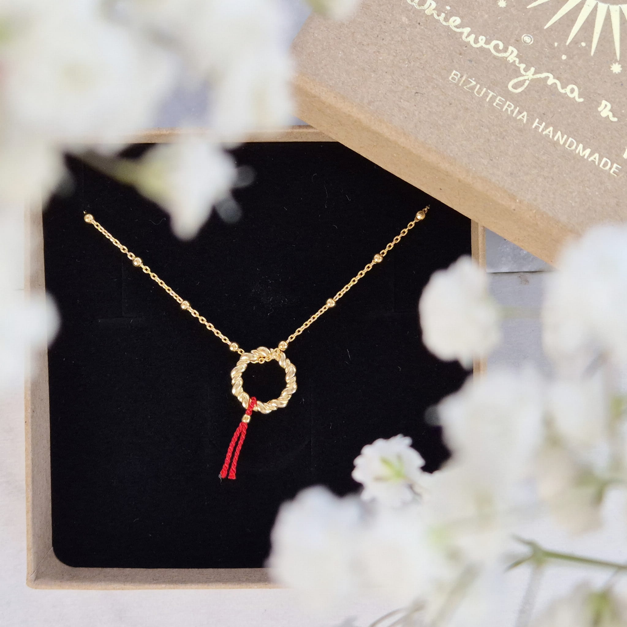 KRĄG SZCZĘŚCIA Złoty Naszyjnik Czerwona Nić