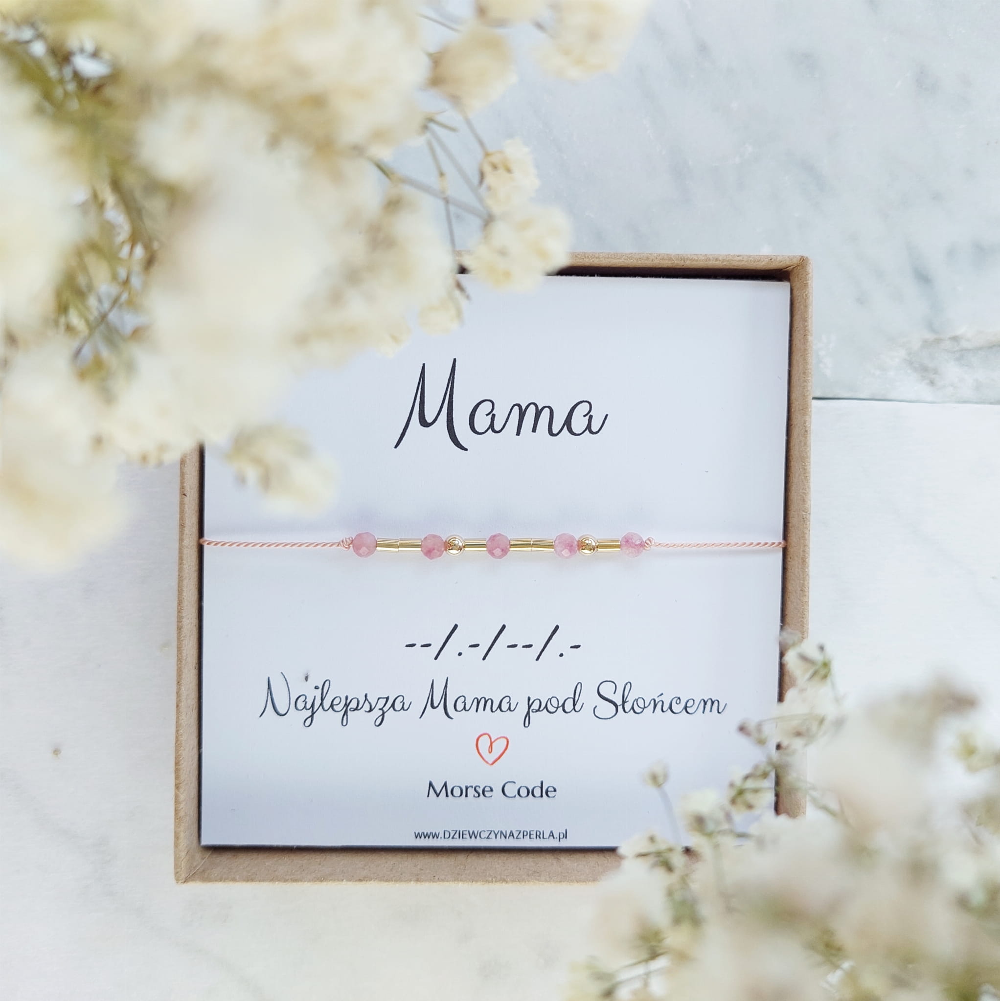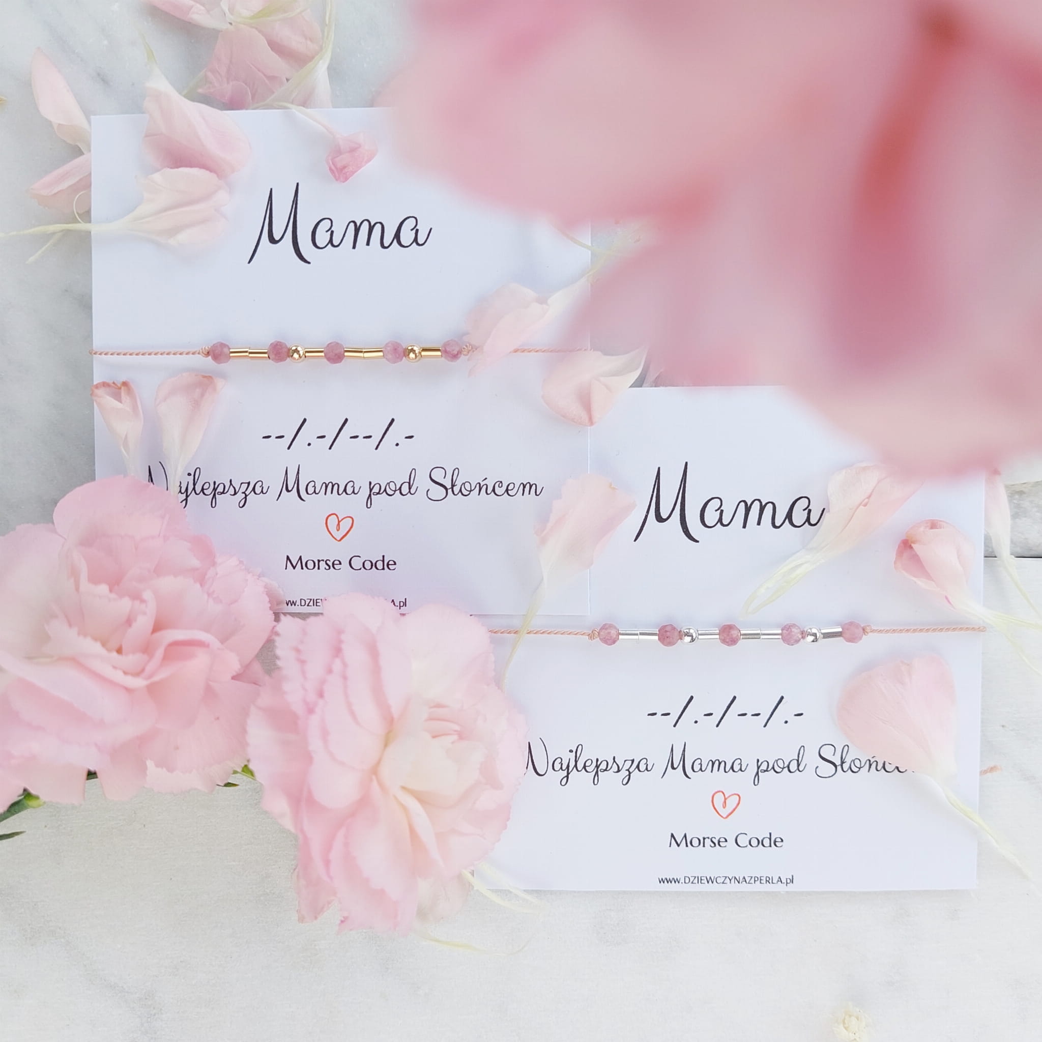 MAMA Bransoletka Morse Code. Srebro, Złoto, Turmalin. Prezent z dedykacją dla Mamy