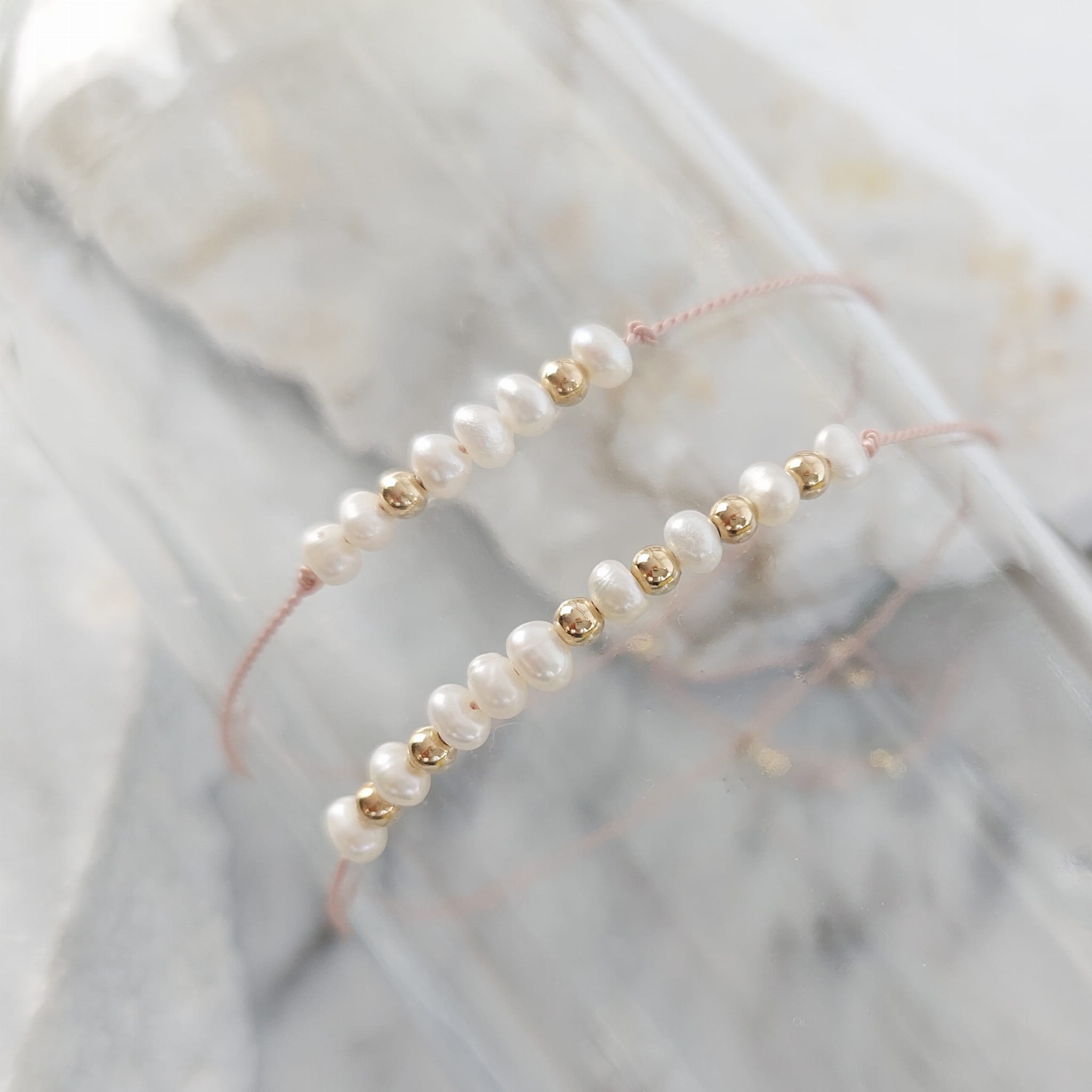 Komplet 3 delikatnych bransoletek z PEREŁ i srebrnych lub złotych kulek.