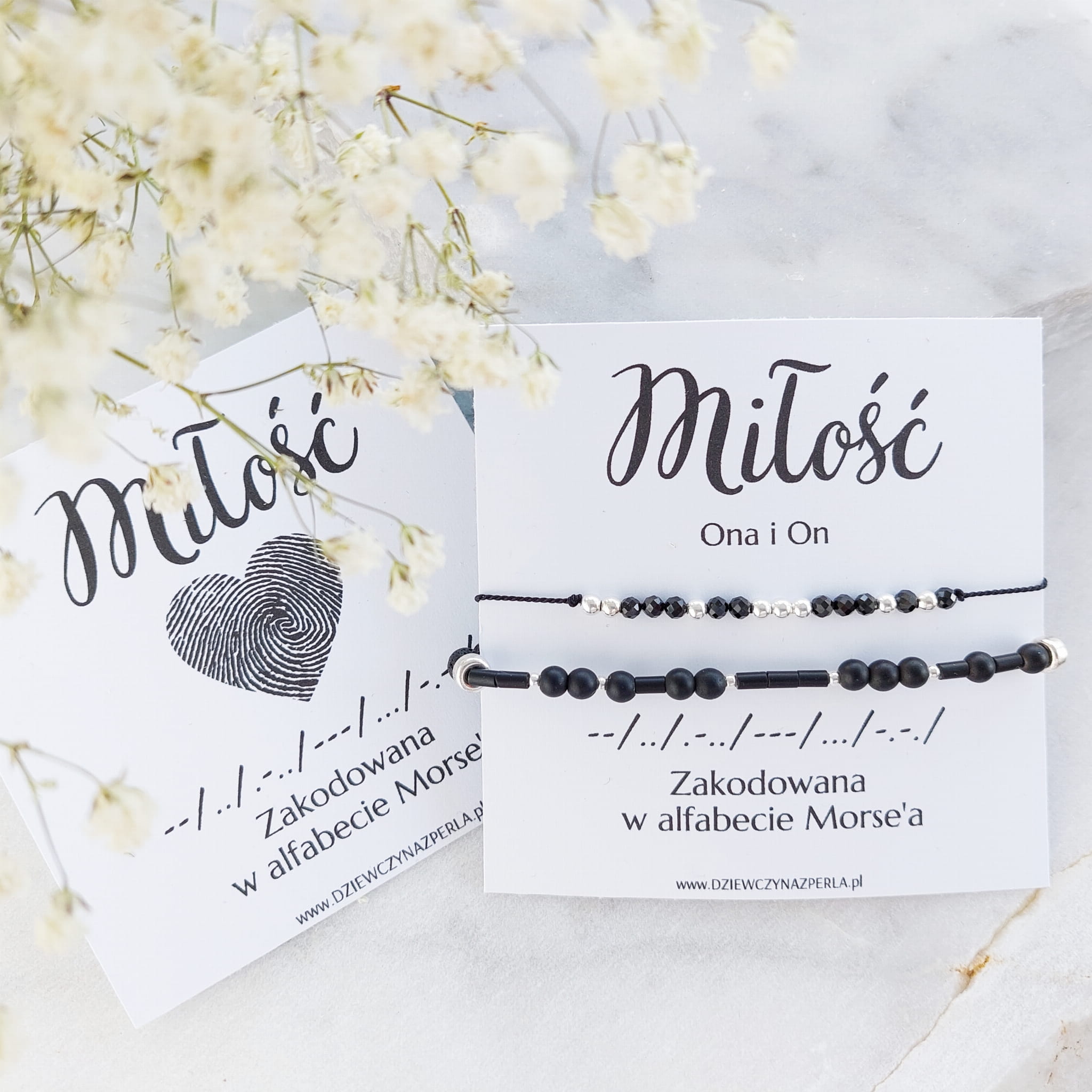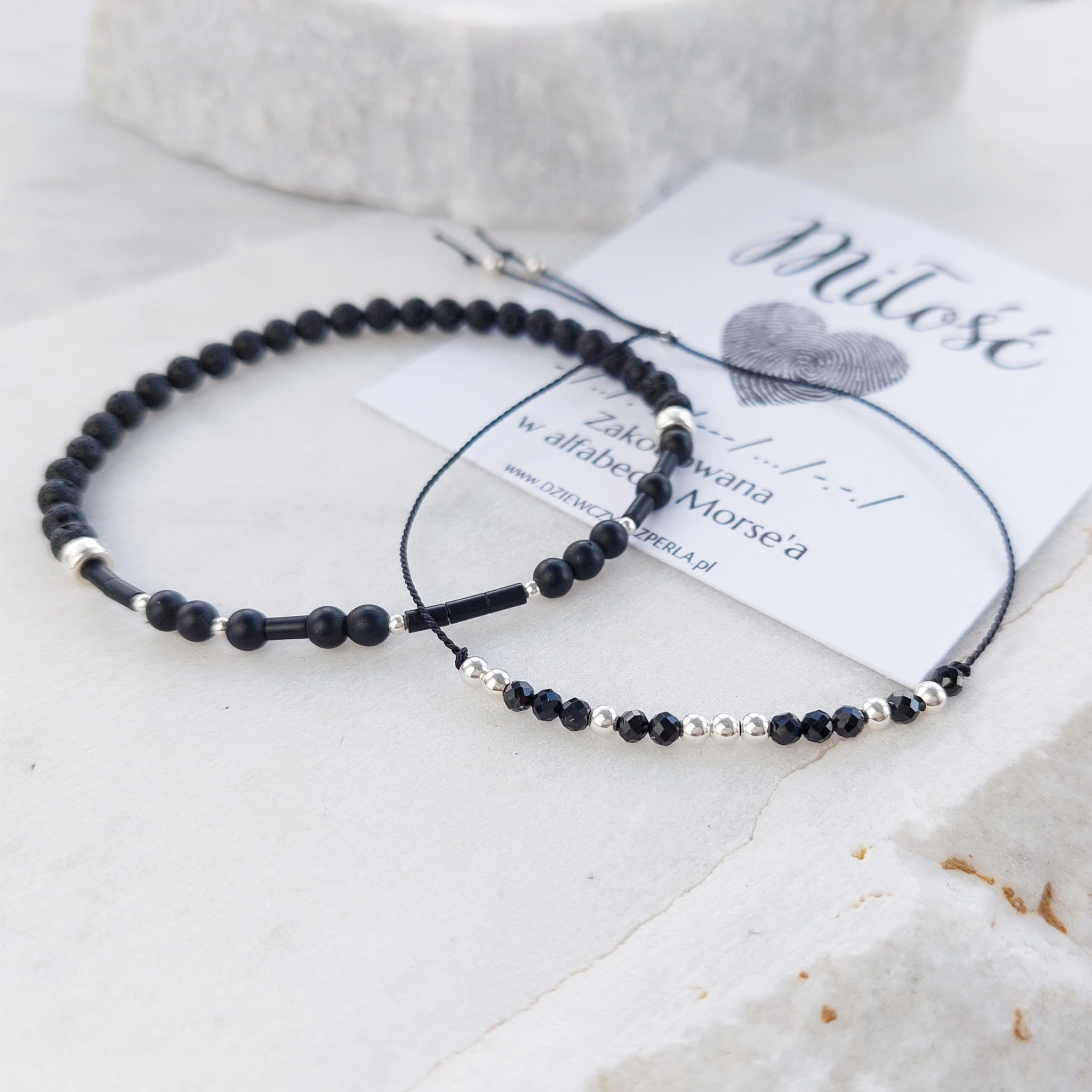 Komplet bransoletek dla pary ❤ Słowo MIŁOŚĆ zakodowane w alfabecie Morse'a ❤ Sekretna wiadomość dla wtajemniczonych:)