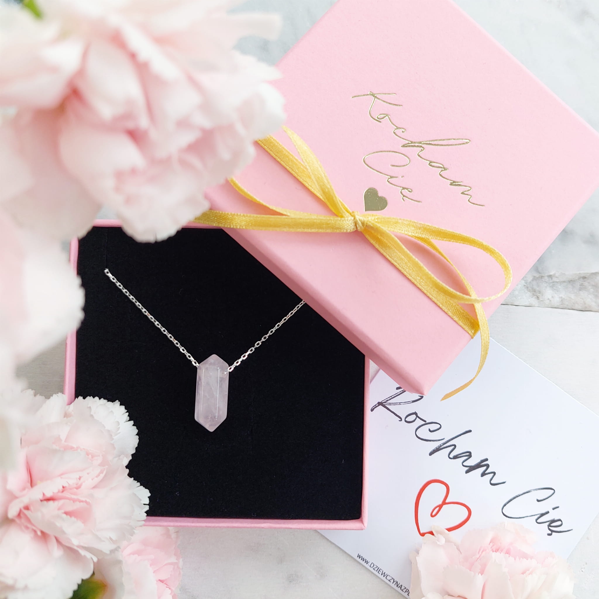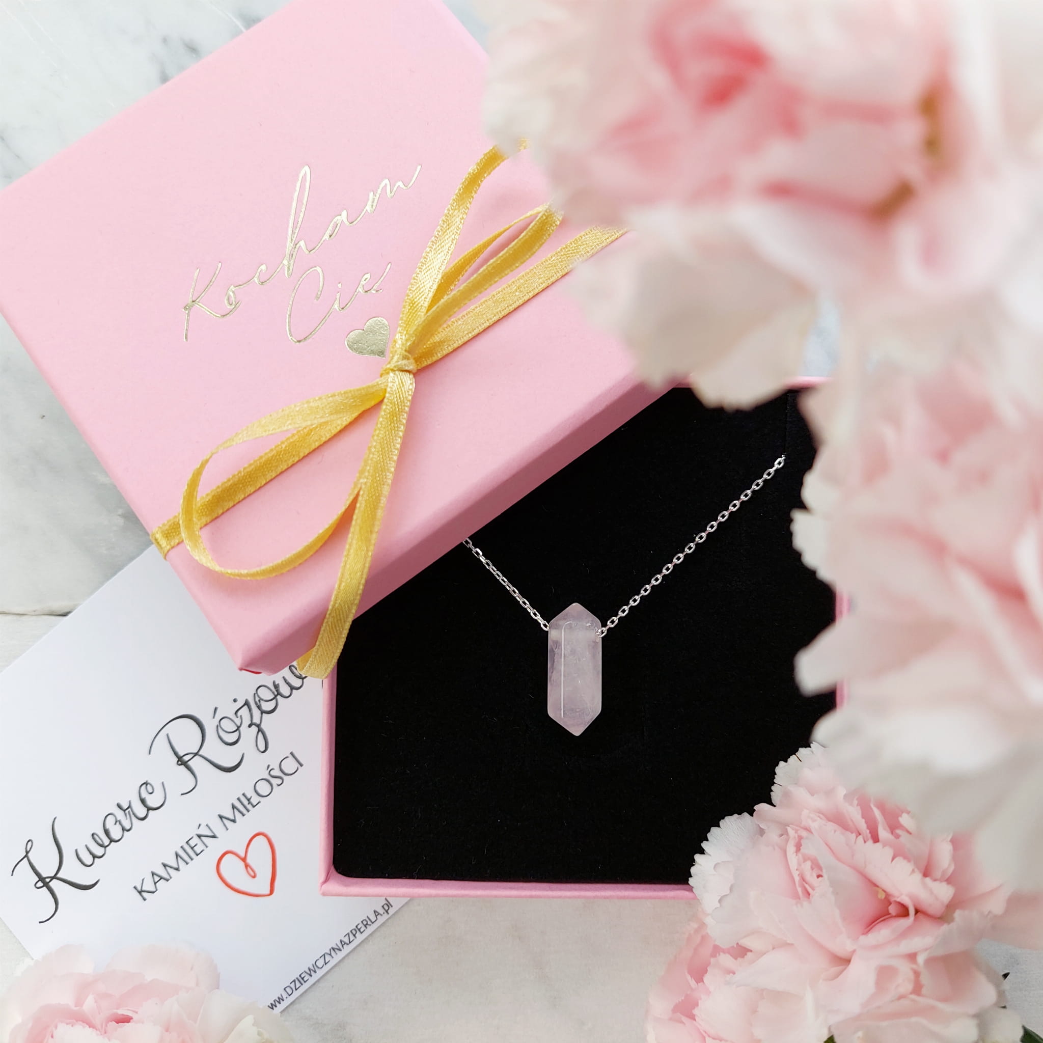 Naszyjnik KAMIEŃ MIŁOŚCI. Sopel Kwarc Różowy. Walentynki