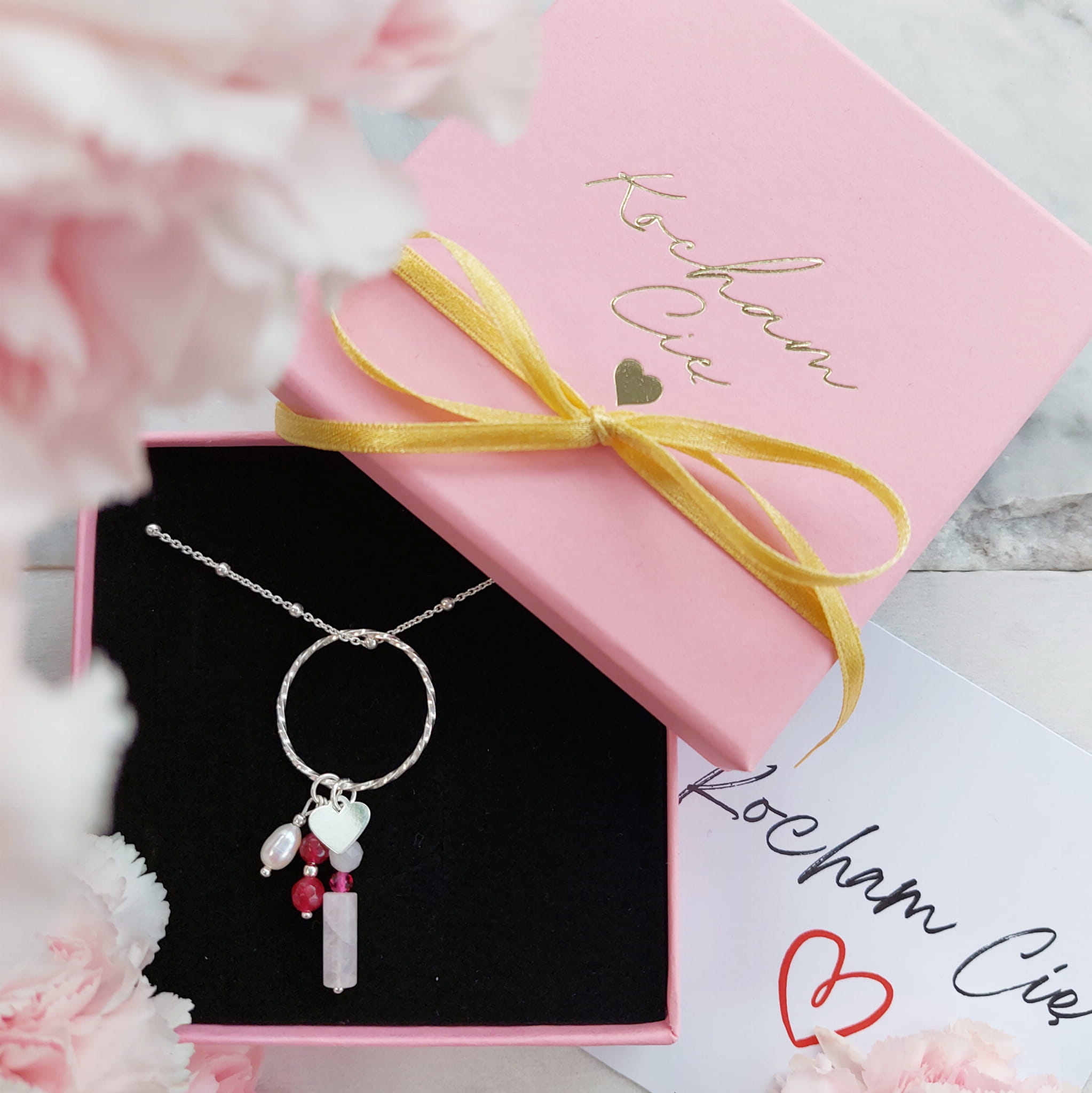 Naszyjnik stworzony z myślą o sytuacjach kiedy chcemy powiedzieć KOCHAM w niebanalny i przepełniony pozytywnymi wibracjami sposób.