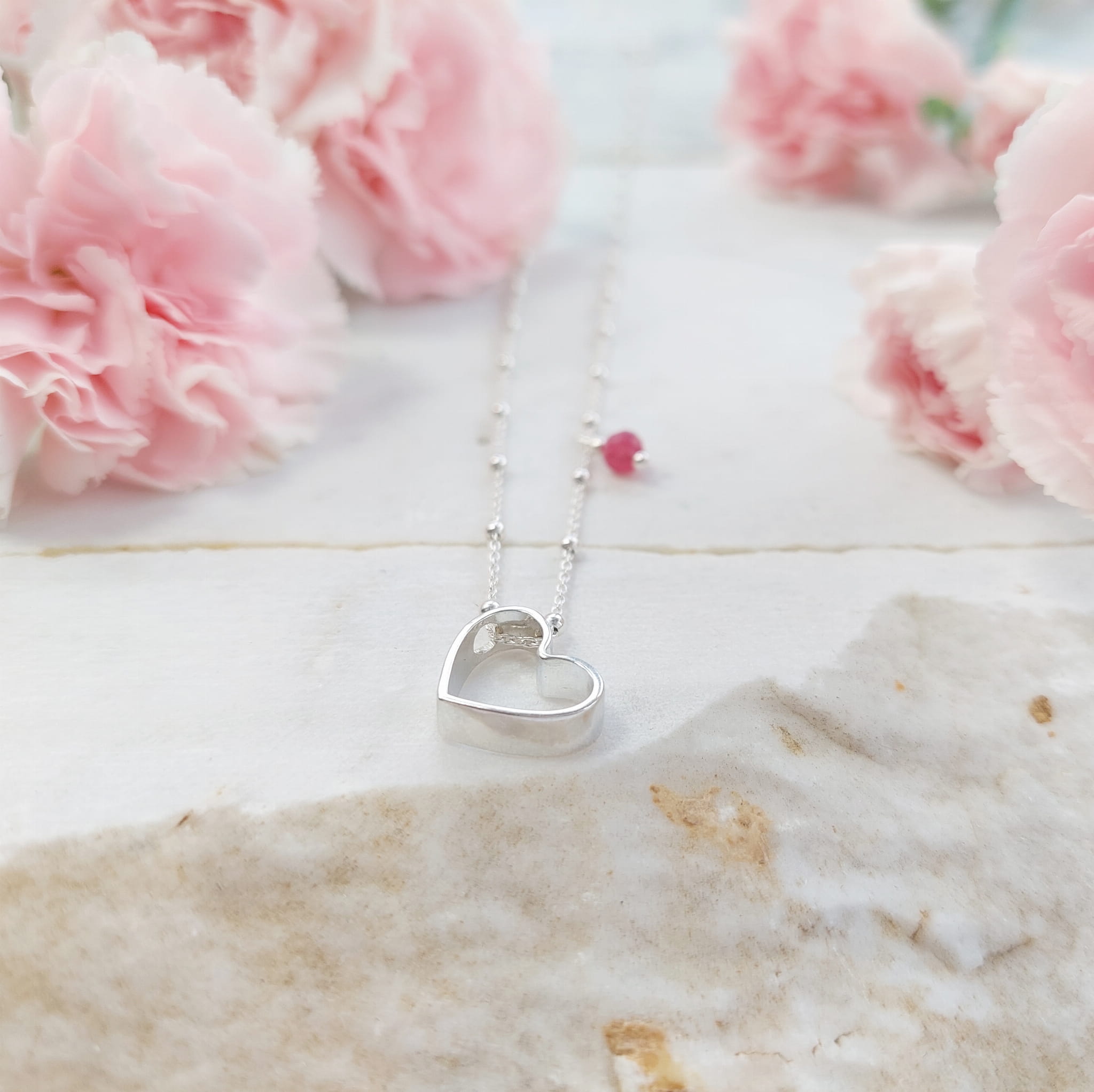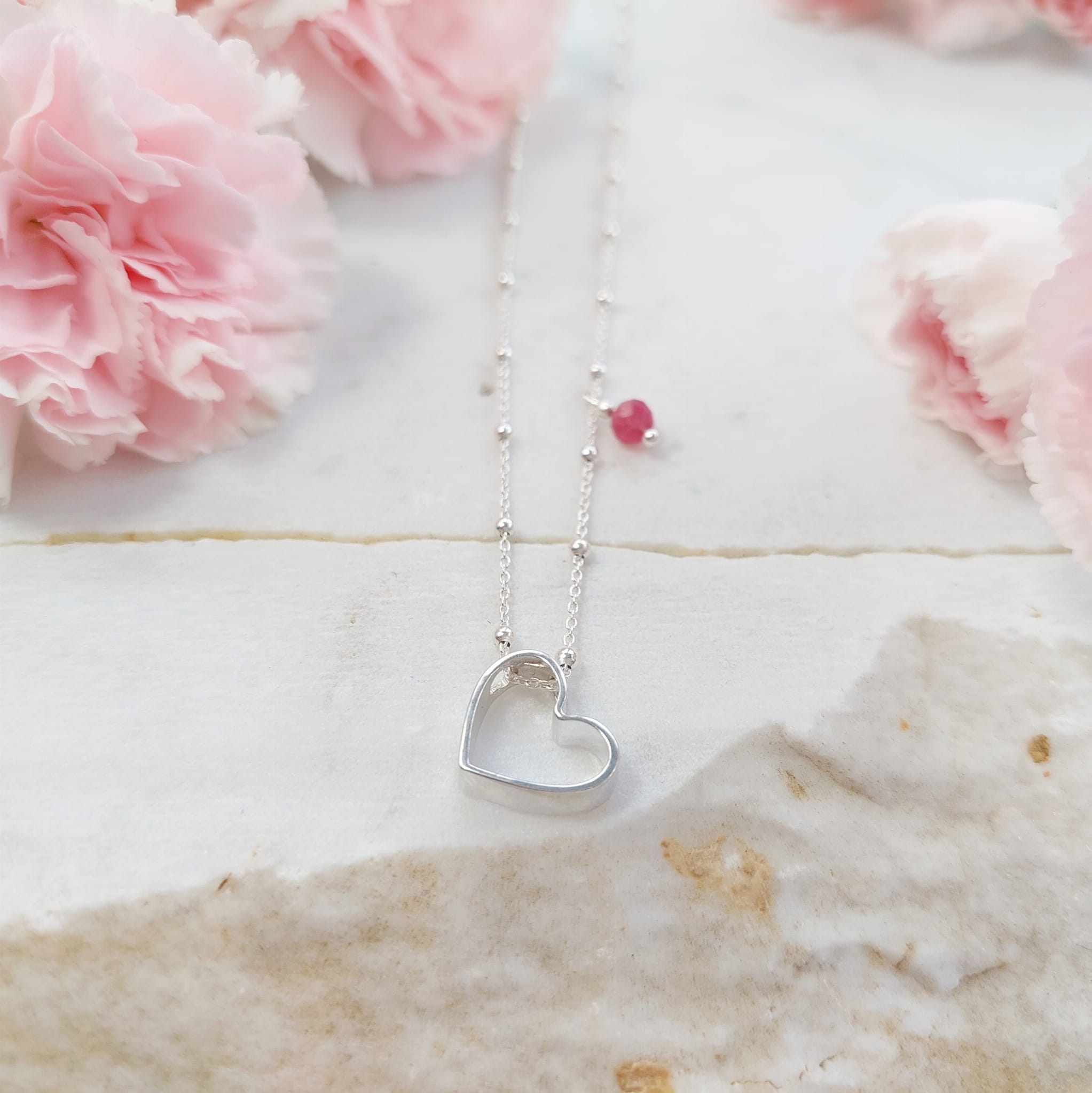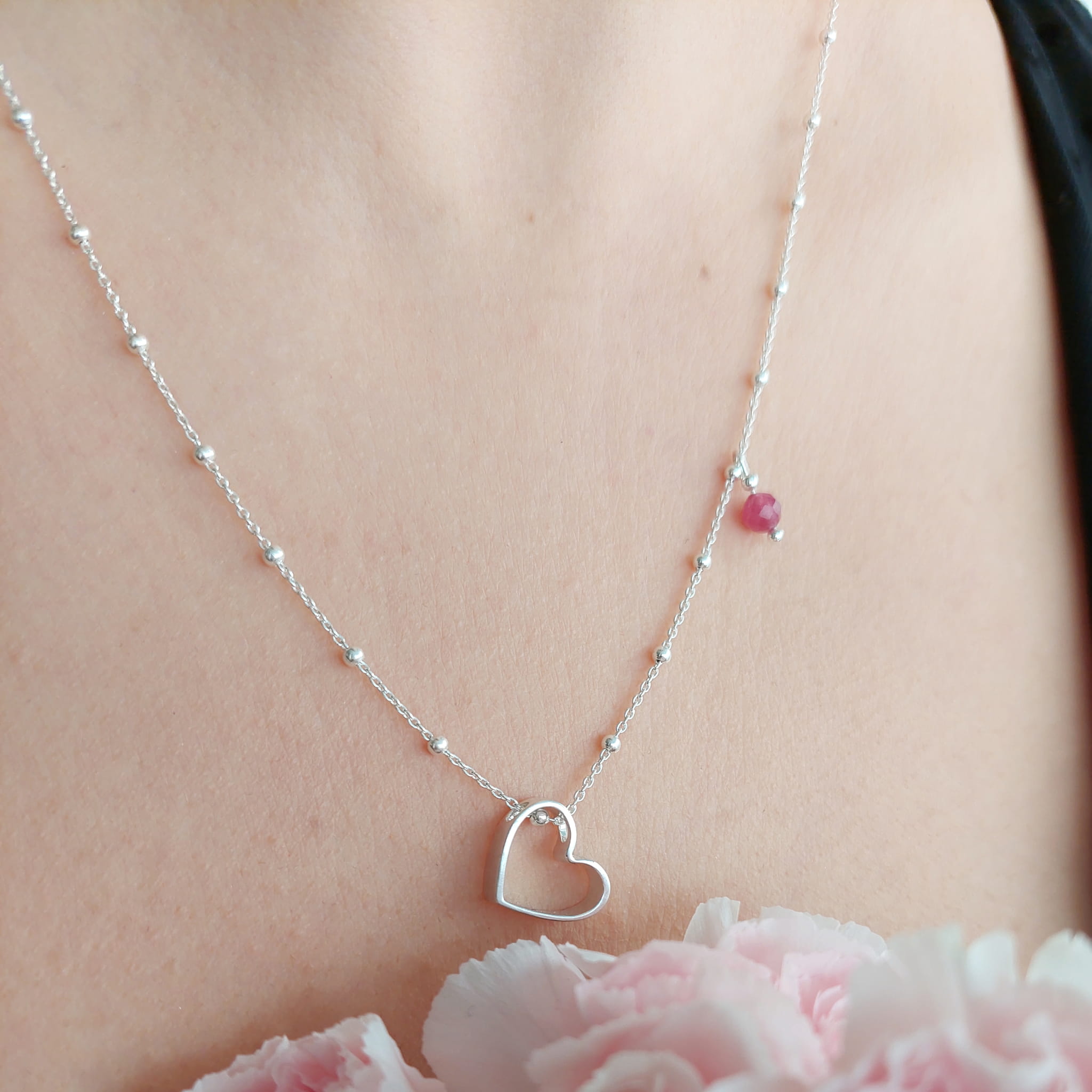 Piękny naszyjnik z dużym sercem i zawieszką z turmalinu różowego.