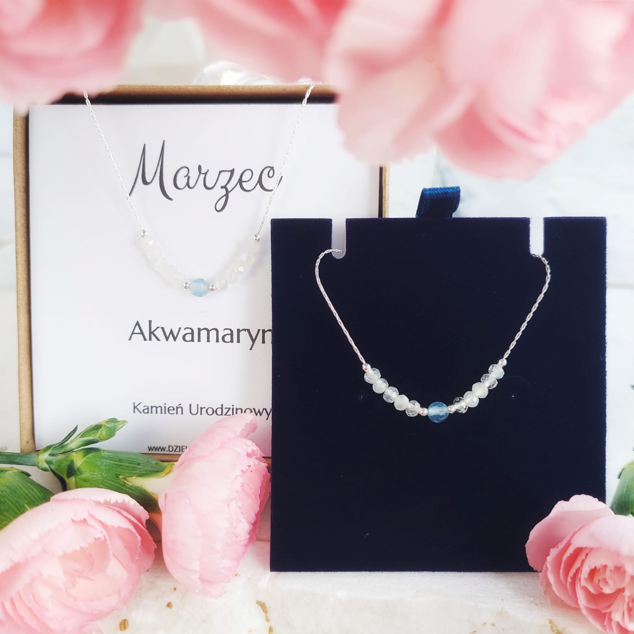 Naszyjnik Urodzinowy MARZEC (Srebro Złoto Akwamaryn)
