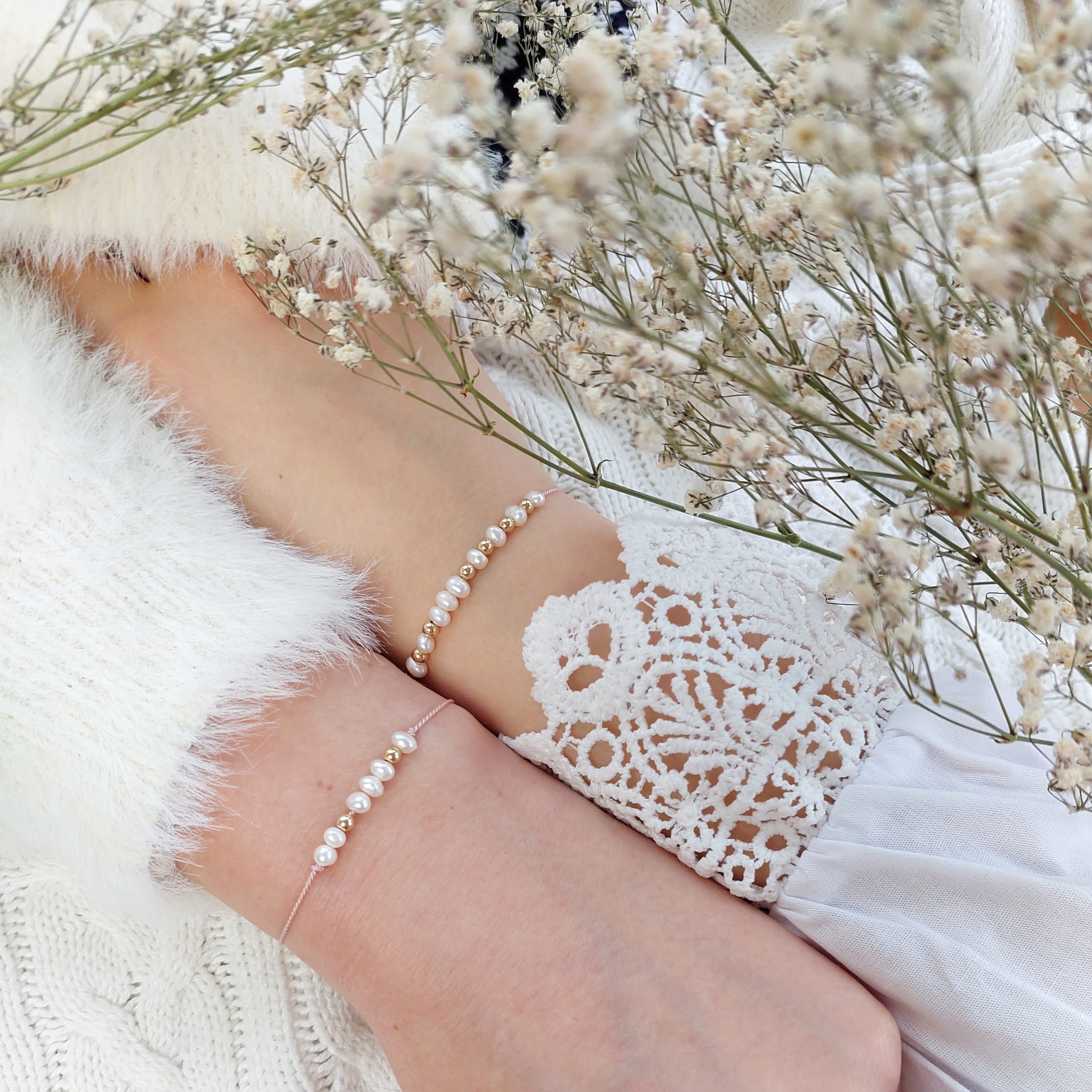 Perły + Złoto (14 karatowe goldfilled) lub Srebro (próba 925)