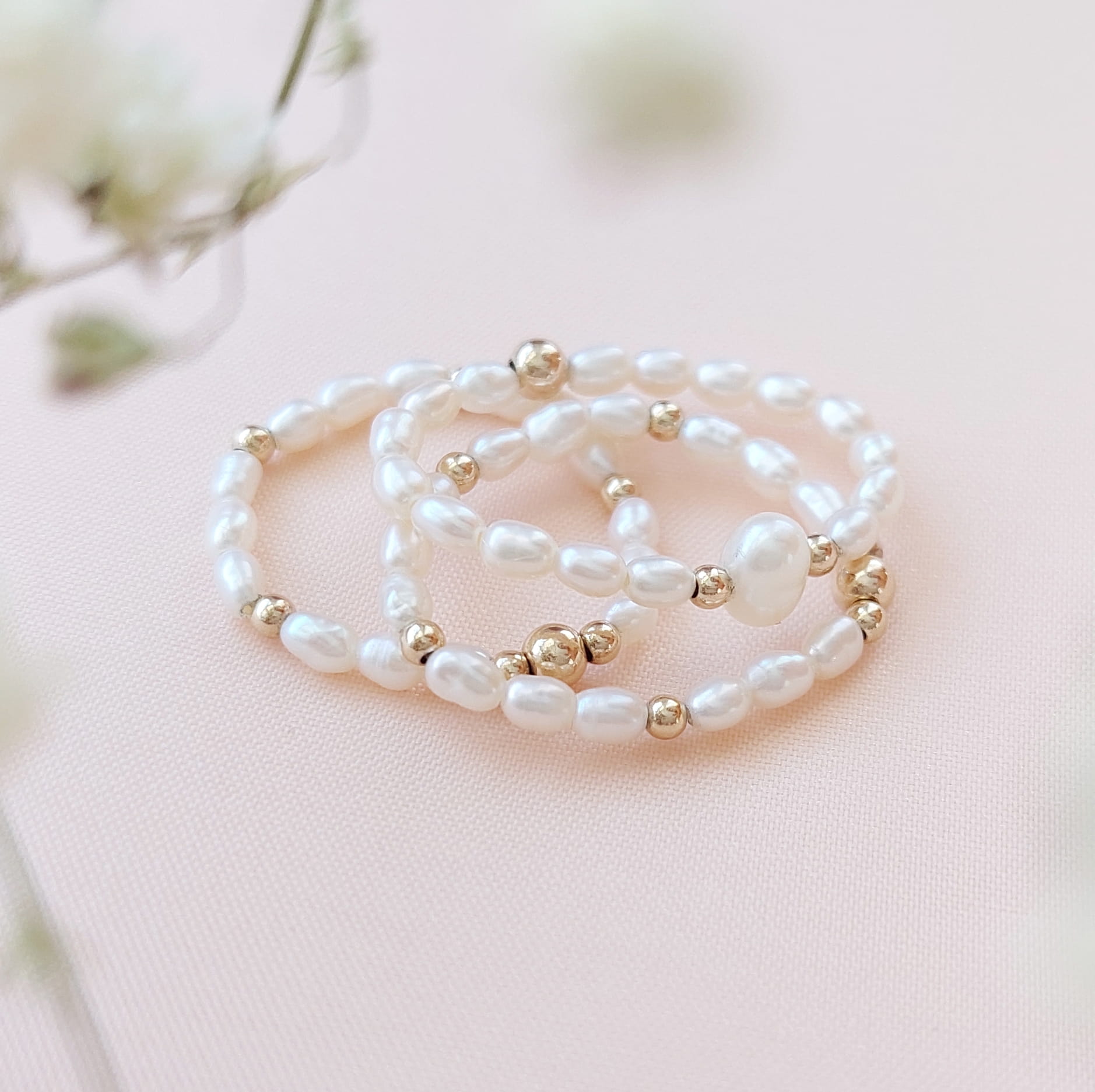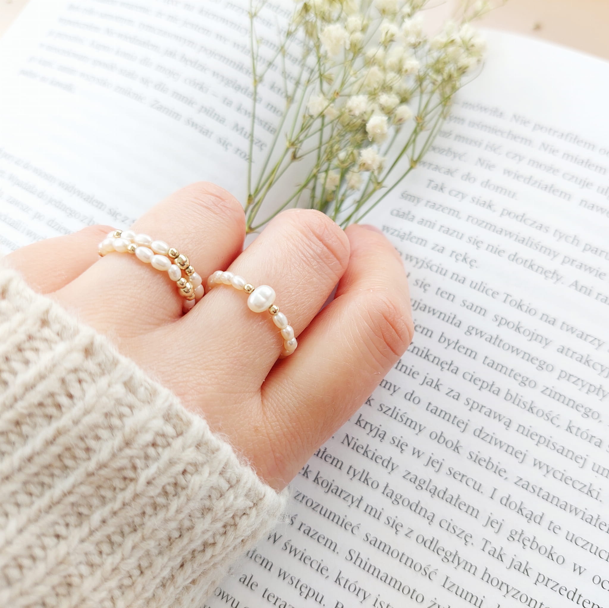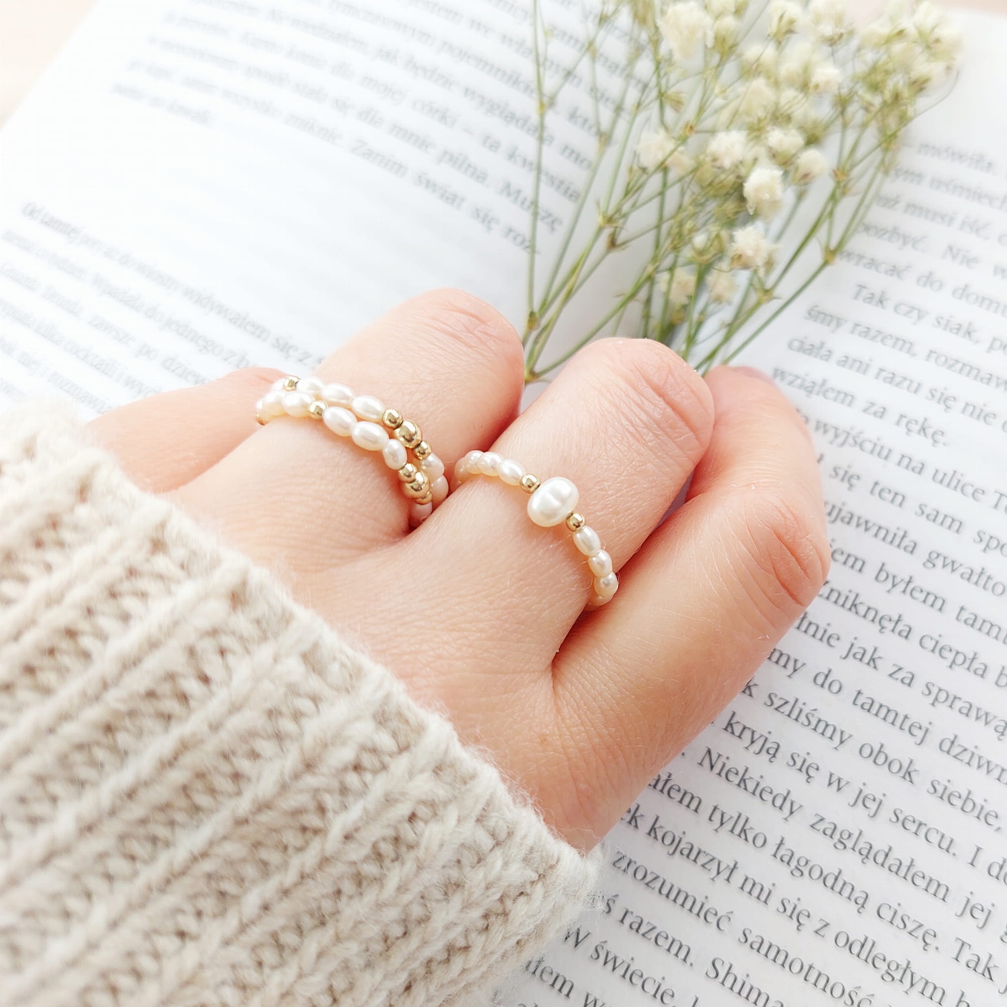 Pierścionki wykonane z naturalnych perełek i 14 karatowego złota goldfilled.