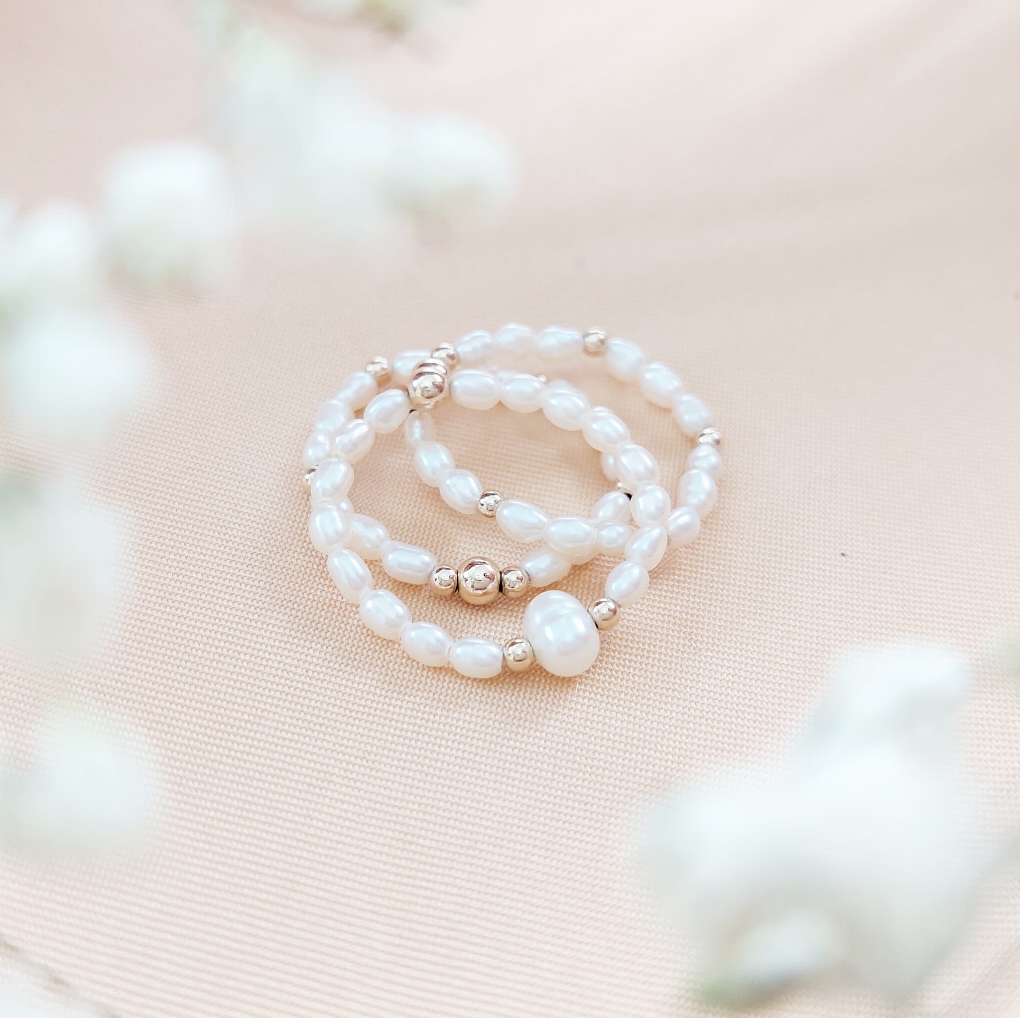 Perłowe Trio. Pierścionki z perełek i złota. Komplet 3 sztuki.